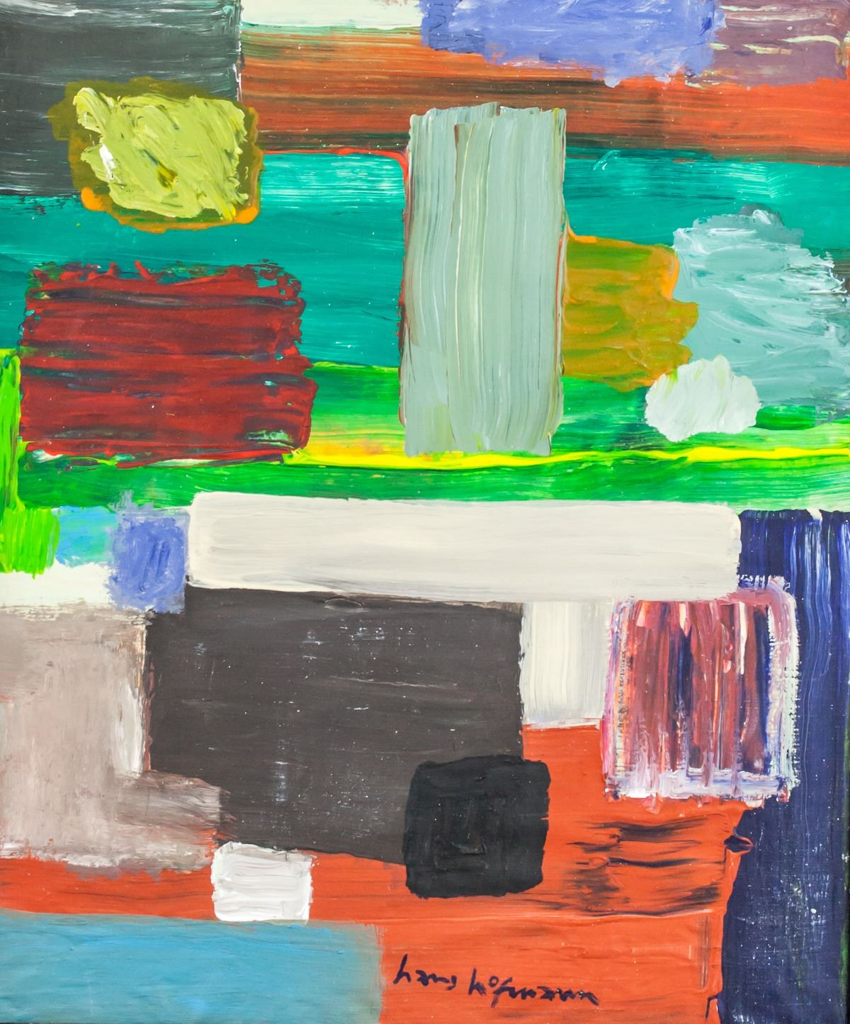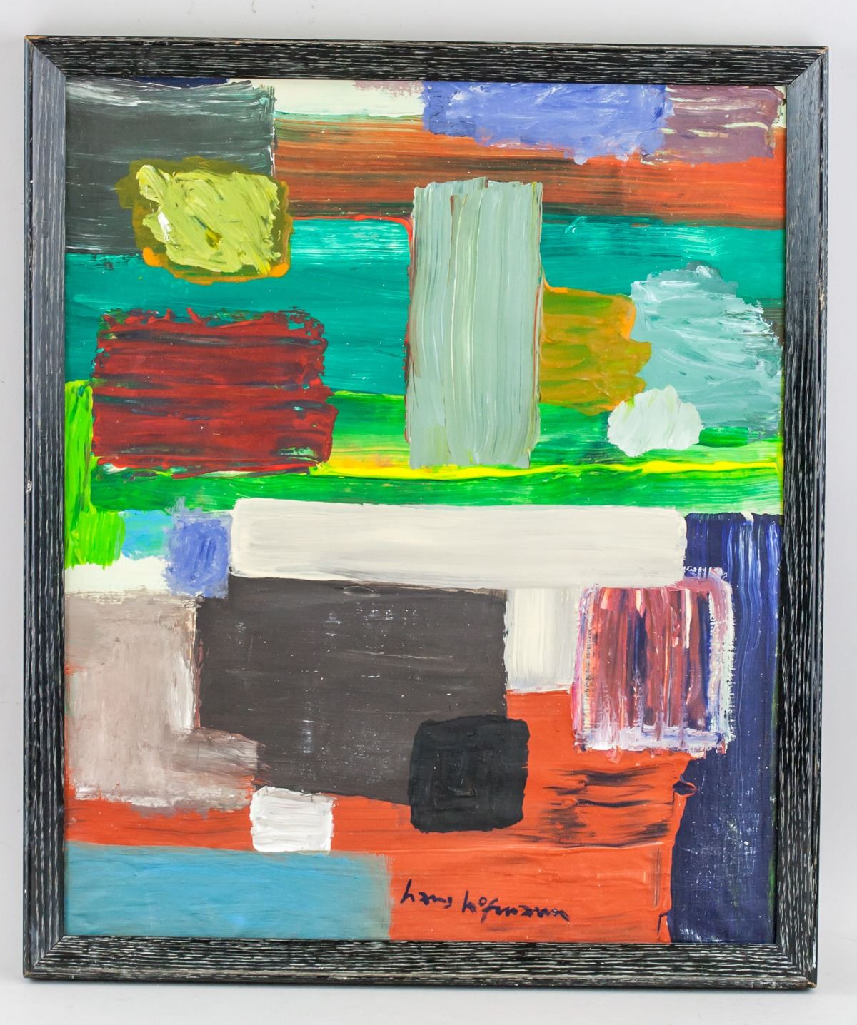 Oil on canvas, framed. Featuring an abstract expressionist composition. Signed hans hofmann on the lower edge. Inscribed hans hofmann and underneath also inscribed 6-3/2B / 28 on verso. Attributed to Hans Hofmann (1880-1966, American). 46 x 38 cm (18.1 x 15.0 inches). Framed size: 49 x 41.5 cm (19.3 x 16.3 inches). PROVENANCE: Southern Ontario estate