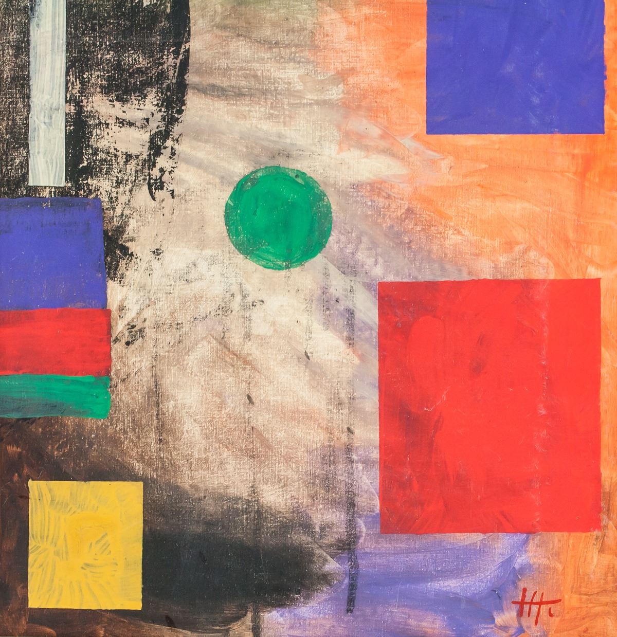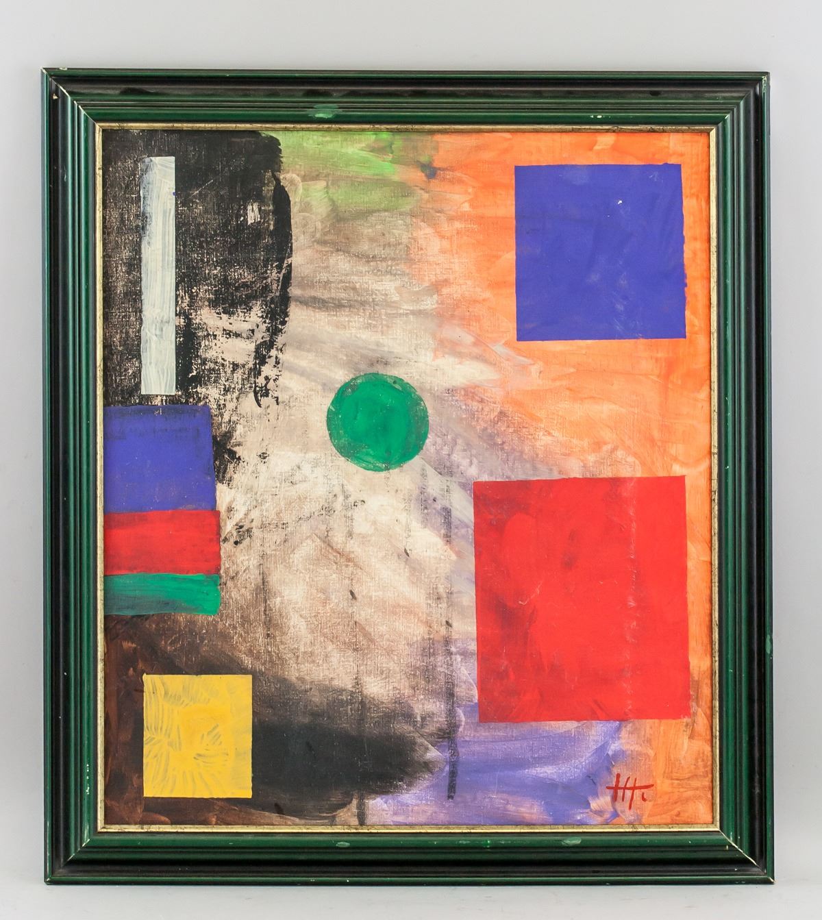 Oil on canvas, framed. Featuring an abstract expressionist composition. Signed HH on the lower right corner. Attributed to Hans Hofmann (1880-1966, American). 52.5 x 46 cm (20.75 x 18 inches). Framed size: 62 x 56 cm (24.5 x 22 inches). PROVENANCE: Southern Ontario estate