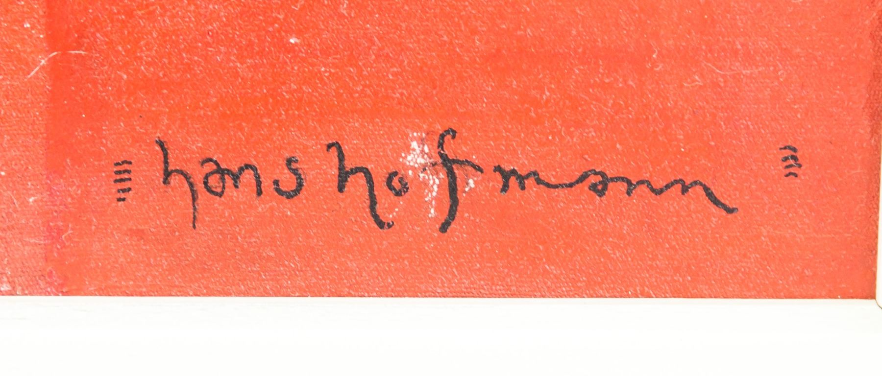 Oil on canvas, framed. Featuring an abstract expressionist composition. Signed hans hofmann on the lower right corner. Attributed to Hans Hofmann (1880-1966, American). 59.5 x 44 cm (23.4 x 17.3 inches). Frame size: 84 x 68 cm (33.1 x 26.8 inches). PROVENANCE: This item has limited provenance from a Southern Ontario estate
