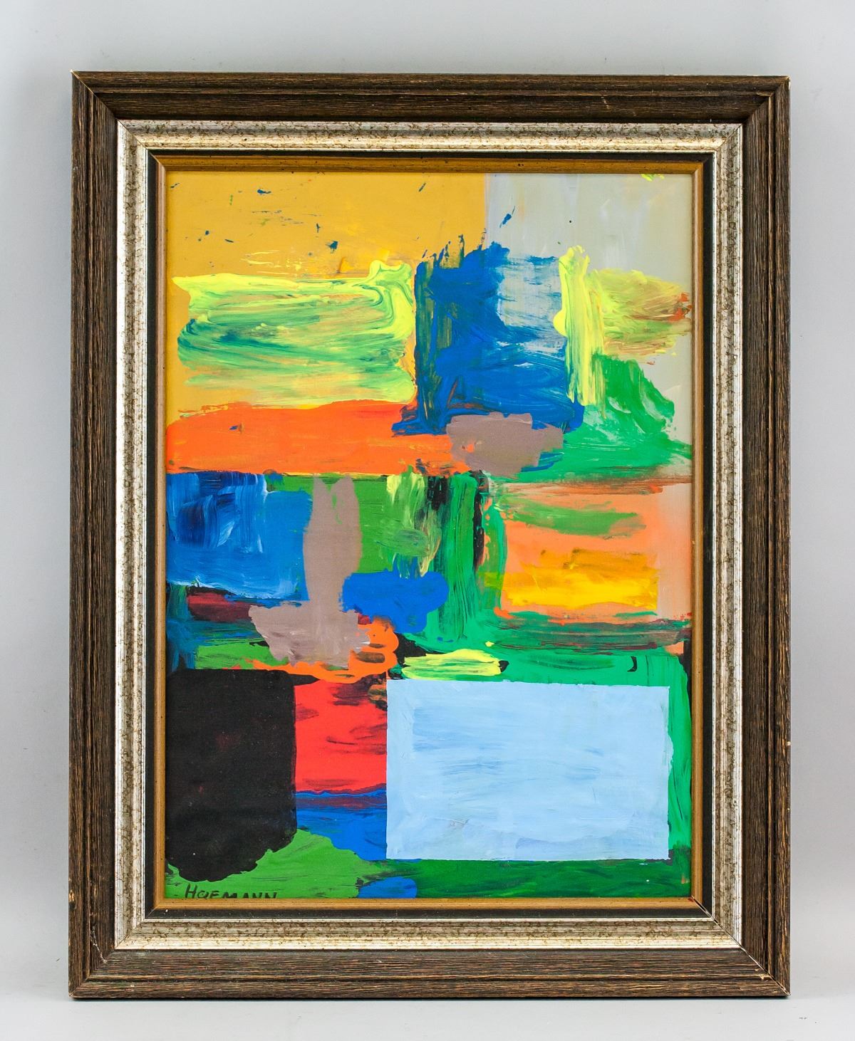 Oil on canvas, framed. Featuring an abstract expressionist composition. Sighed Hofmann on the lower left corner. Attributed to Hans Hofmann (1880-1966, German-American). 50 x 36 cm (19.5 x 14.25 inches). Framed size: 61 x 48 cm (24 x 18.75 inches). PROVENANCE: This lot carries limited provenance from a Southern Ontario estate
