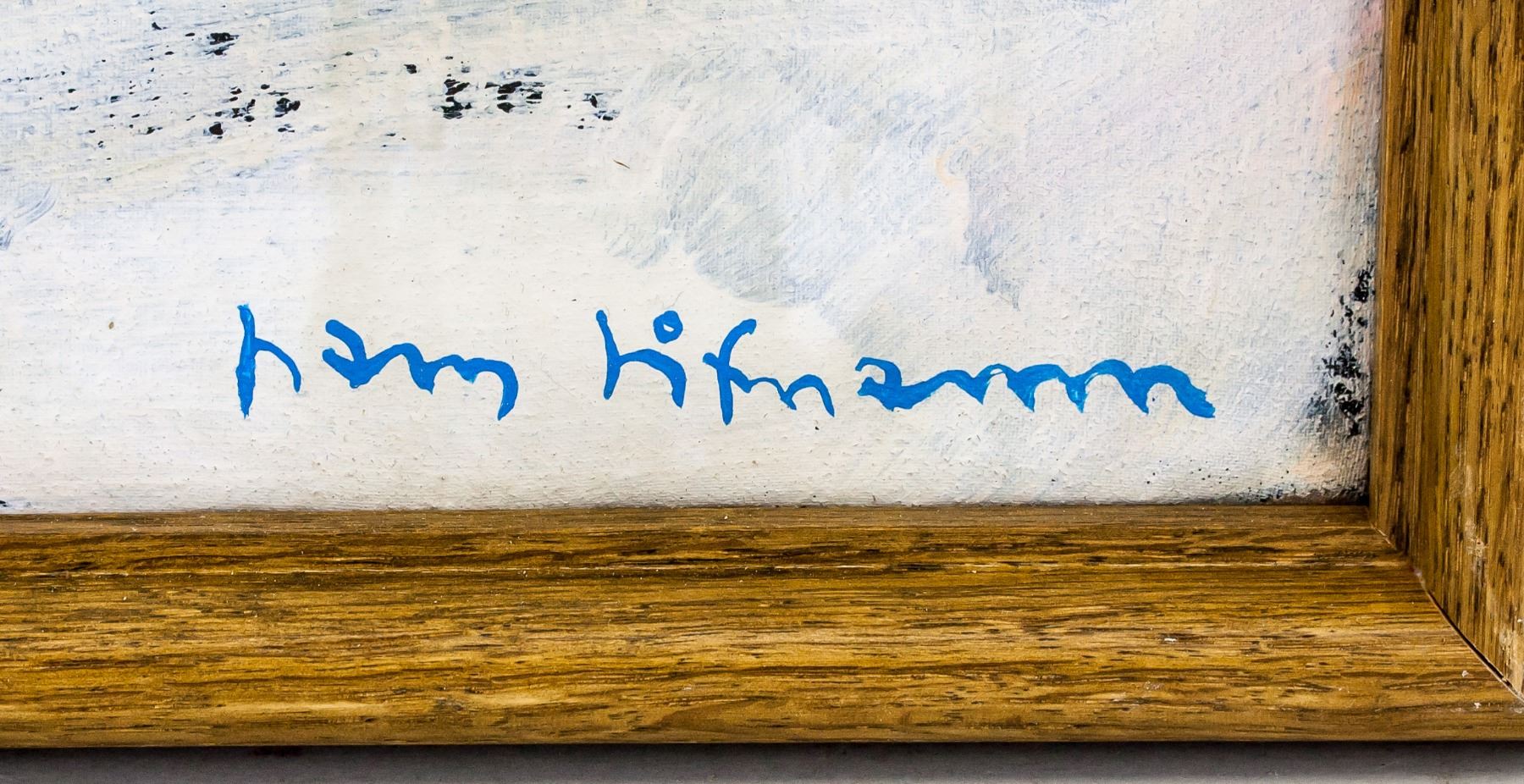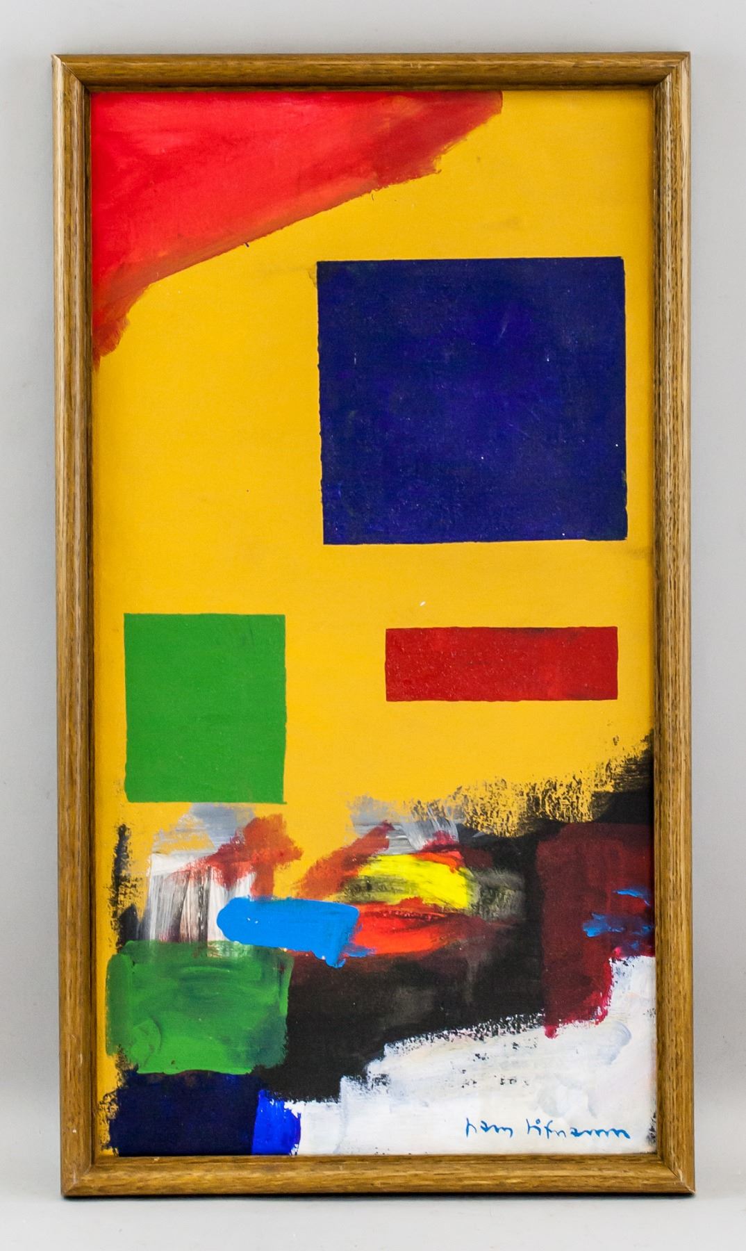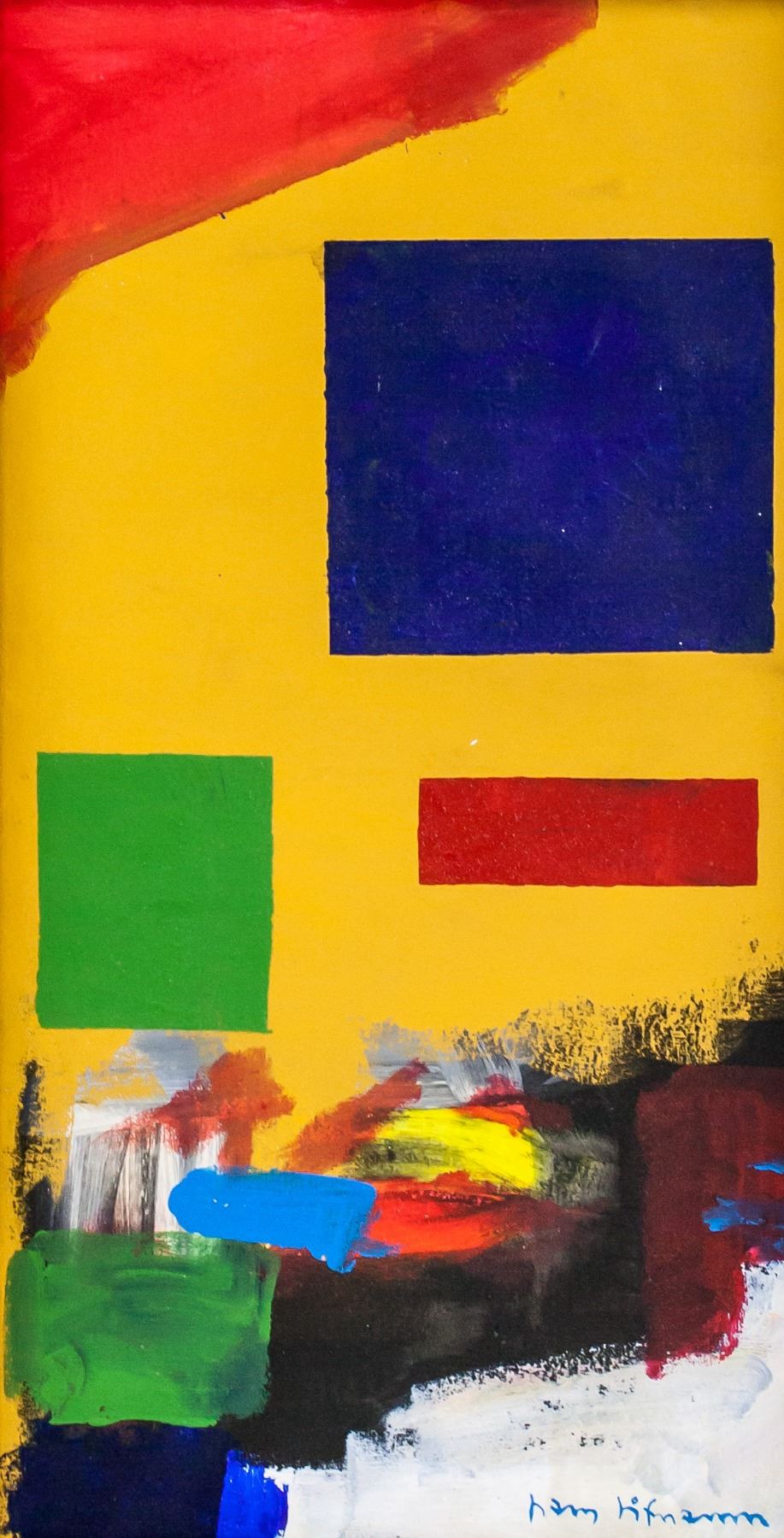 Oil on canvas, framed. Featuring abstract expressionist composition. Signed Hans Hofmann in lower right corner. Attributed to Hans Hofmann (1880-1966, German-American). 59 x 31 cm (23.25 x 12.25 in). Frame: 63 x 35 cm (24.75 x 13.75 in). PROVENANCE: Southern Ontario estate