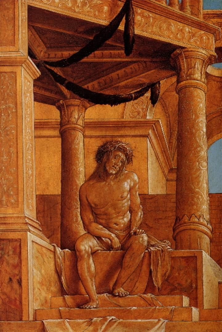 Artist: Hans Holbein - Title: Christ in Pain - Medium: Fine Art Giclee on Canvas - Image Size: Approximately 32 inches x 21.5 inches - Unframed on Unstretched Canvas - Biography: Hans Holbein the Younger (c. 1497 - between October and November 1543) was a German painter and printmaker who worked in a Northern Renaissance style, and is considered one of the greatest portraitists of the 16th century. He also produced religious art, satire, and Reformation propaganda, and he made a significant contribution to the history of book design. He is called "the Younger" to distinguish him from his father Hans Holbein the Elder, an accomplished painter of the Late Gothic school.His Late Gothic style was enriched by artistic trends in Italy, France, and the Netherlands, as well as by Renaissance humanism. The result was a combined aesthetic uniquely his own.