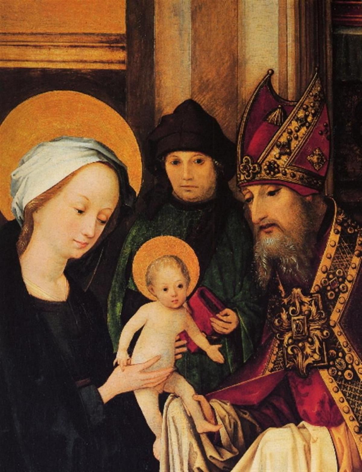 Artist: Hans Holbein - Title: Maria and Archpriest with the Christ - Medium: Fine Art Giclee on Canvas - Image Size: Approximately 20 inches x 15.5 inches - Unframed on Unstretched Canvas - Biography: Hans Holbein the Younger (c. 1497 - between October and November 1543) was a German painter and printmaker who worked in a Northern Renaissance style, and is considered one of the greatest portraitists of the 16th century. He also produced religious art, satire, and Reformation propaganda, and he made a significant contribution to the history of book design. He is called "the Younger" to distinguish him from his father Hans Holbein the Elder, an accomplished painter of the Late Gothic school.His Late Gothic style was enriched by artistic trends in Italy, France, and the Netherlands, as well as by Renaissance humanism. The result was a combined aesthetic uniquely his own.