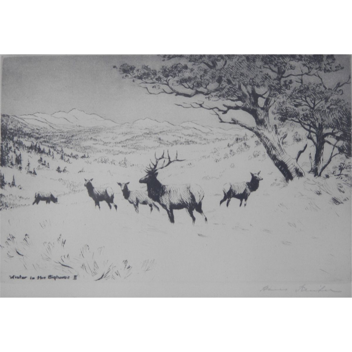 Hans Kleiber (1887-1967) (Wyoming), Etching, "Winter in the Bighorns II", 4" x 6 1/4", Pencil Signed Lower Right, Estimate: $250- $400