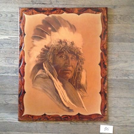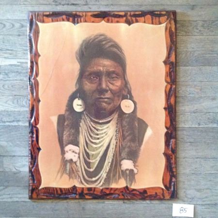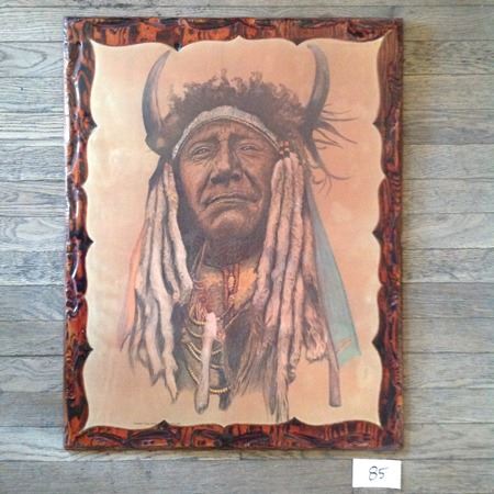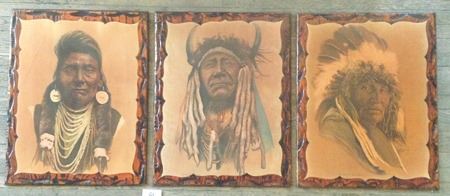 Ca. 1980s, Set of three lithographs decopaged onto wood of Chief Joseph, Tomahawk, and Two Moons. The originals are by this German born artist who lived in Sedona, Arizona. 28" x 21"