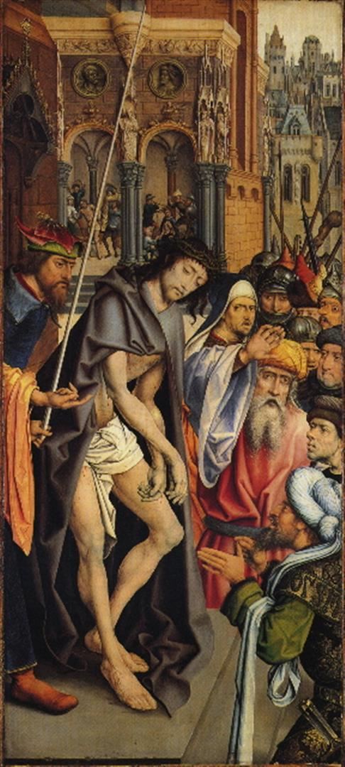 Artist: Hans Memling - Title: Christ Presented to the People - Medium: Fine Art Giclee on Canvas - Image Size: Approximately 20 inches x 9 inches - Unframed on Unstretched Canvas - Biography: Hans Memling (c. 1430 - 11 August 1494) was a painter active in Flanders, who worked in the tradition of Early Netherlandish painting. He was born in the Middle Rhine region, and probably spent his childhood in Mainz. He moved to the Netherlands and spent time in the Brussels workshop of Rogier van der Weyden. He was subsequently made a citizen of Bruges in 1465, where he became one of the leading artists, running a large workshop, which painted religious works that often incorporated donor portraits of his wealthy patrons. Memling's patrons included burghers (bankers, merchants, and politicians), clergymen, and aristocrats.