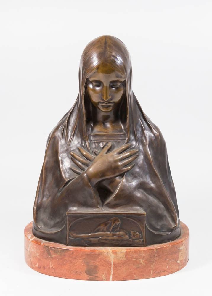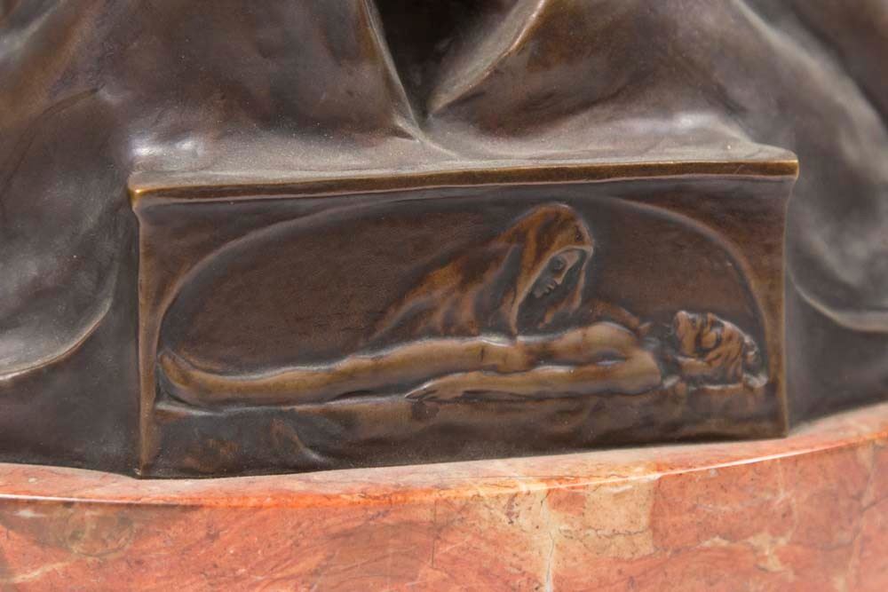 With marble base. Signed and stamped Austria. Hans Muller (1873-1937). Approx. 15" H x 12" W.