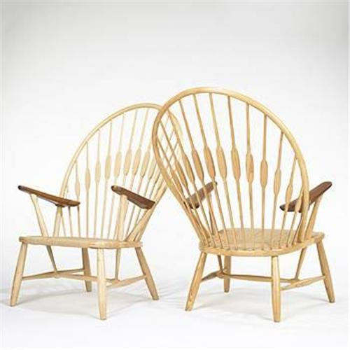 Hans Wegner<BR>Peacock chairs, pair<BR>Johannes Hansen<BR>Denmark, c. 1950<BR>ash, walnut, rush<BR>28"w x 28"d x 42"h<BR>Branded maker mark to bottom: [Johannes Hansen Copenhagen Denmark].<BR>Literature: Danish Chairs, Oda, pg. 106<BR><BR><BR><BR>