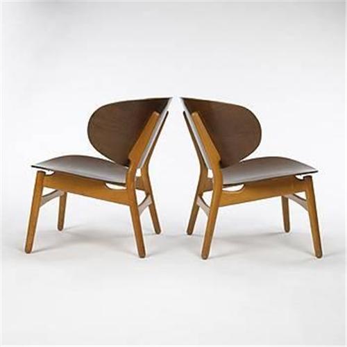 Hans Wegner<BR>Shell chairs, pair<BR>Fritz Hansen<BR>Denmark, 1951<BR>teak, beech<BR>28"w x 25"d x 27.25"h<BR>Signed with branded marks: [FH Danmark].<BR>Literature: Mobeldesign: Danske Klassikere 1925-1975, Moller, pg. 13<BR><BR><BR><BR>