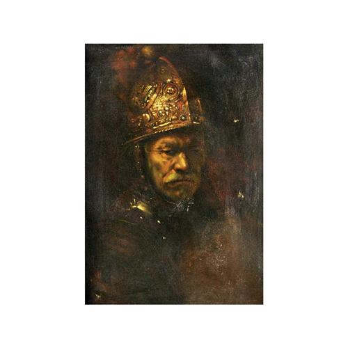 Dutch [1889-1947] THE MAN WITH THE GOLDEN HELMET;1945 oil on canvas 27 x 19.75 in. (68.2 x 50.2 cm) signed & dated verso Note: Hans van Meegeren is a notorious forger whose works have hung in museums around the world. This work is a copy of a painting in the Berlin Museum long considered to be one of Rembrandt's masterpieces but de-attributed in 1985. The date and signature were likely added later, during Meegeren's 1945 trial for conspiracy and forgery.