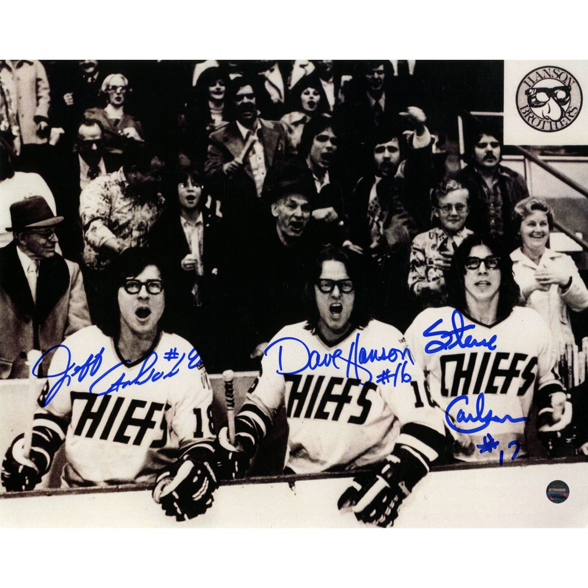 Hanson Brothers Charleston Chiefs Triple Signed On Bench 8x10 Photo