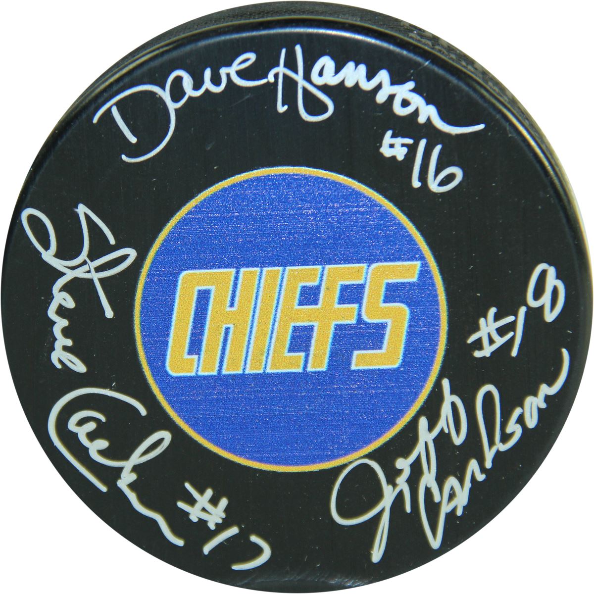 Hanson Brothers Signed Charlestown Chiefs Puck