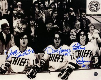 Hockey cult legends The Hanson Brothers have personally hand-signed this 'On Bench' 8x10 Photo-The cult classic movie 'Slap Shot' is a film that is based on the Carlson Brothers who are also known to many as the Hanson Brothers. This 1977 Hockey comedy starring Paul Newman and two of the real life Hanson Brothers in Jeff Carlson and Steve Carlson depict the story of the Johnstown Jets of the North American Hockey League in which the Carlson brothers were a part of. Commemorate this film about these funny tough nosed Hanson Brothers by owning this autographed 8x10 photo signed by Steve Carlson, Jeff Carlson and Dave Hanson. This is a great piece for any hockey fan. This Hanson Brothers autograph is guaranteed authentic and includes a Steiner Sports Certificate of Authenticity and an accompanying tamper-evident Steiner Hologram.