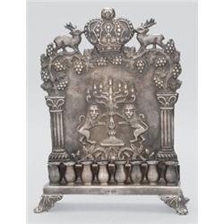 Vladimir, 1883, ezüst, cirillbetus "S. Sefler" mesterjegy, préselt poncolt díszítéssel, egykor aranyozva, hátlapján függesztovel, hiányos, 585,8 g; 29*22*7 cm