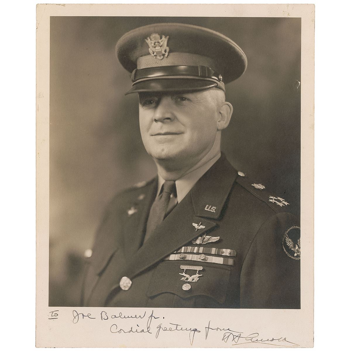 Handsome matte-finish 8 x 10 portrait of Arnold in his five-star uniform, signed and inscribed in the lower border in fountain pen, “To Joe Balwer, Jr., Cordial greetings from, H. H. Arnold.” Trivial creasing and soiling, a small tear to the background, and some fading to end of the signature, otherwise fine condition.