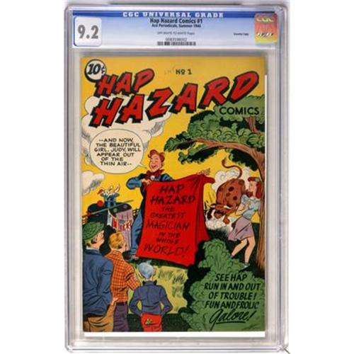 <B>Hap Hazard Comics #1 Crowley Copy pedigree (Ace, 1944) CGC NM- 9.2 Off-white to white pages.</B></I> Lou Ferstadt cover. Overstreet 2007 NM- 9.2 value = $170. CGC census 6/07: 1 in 9.2, none higher.<BR><BR><b>Shipping:</b> Comics - Slabbed (certified) (<a target="_blank" href="http://www.heritageauctions.com/common/shipping.php">view shipping information</a>)