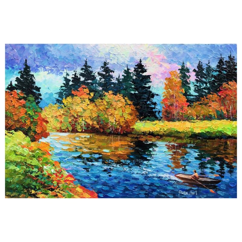 "Happy Along" is an original oil painting on stretched canvas by Alexander Antanenka. Hand signed by the artist, the piece comes with a letter of authenticity. Measures approximately 16" x 24" (image). There may be scuffs on the edges and corners which would be concealed when framed.