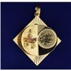In 14K yellow gold it contains a 2mm sapphire & ruby, it is 1 1/2 inches long with the bale. 4.8g