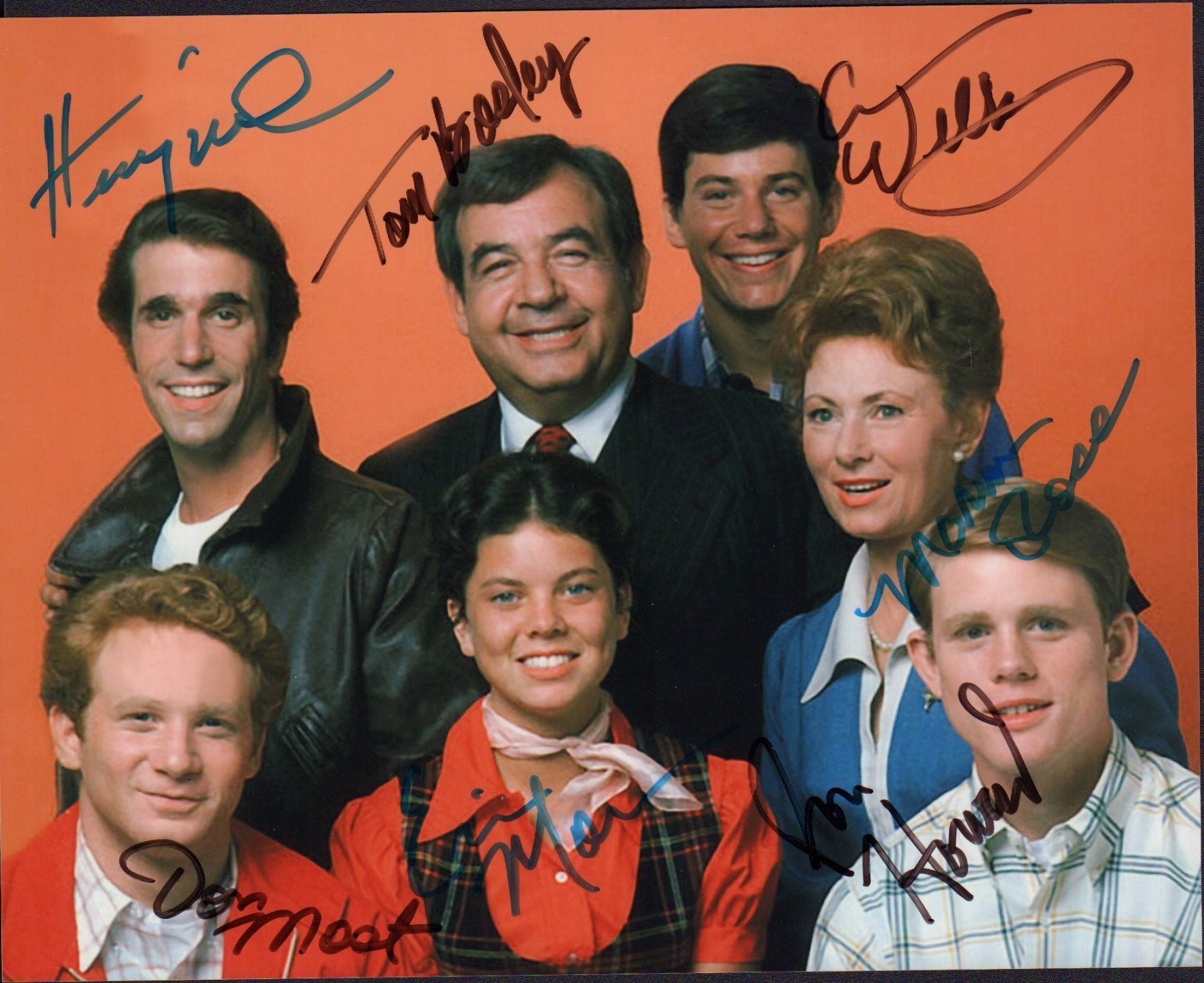 Color 8x10 photograph from the series Happy Days signed by Henry Winkler, Tom Bosley, Marion Ross, Donny Most, Erin Moran and Ron Howard. All items come with a certificate of authenticity good for the life of the piece.