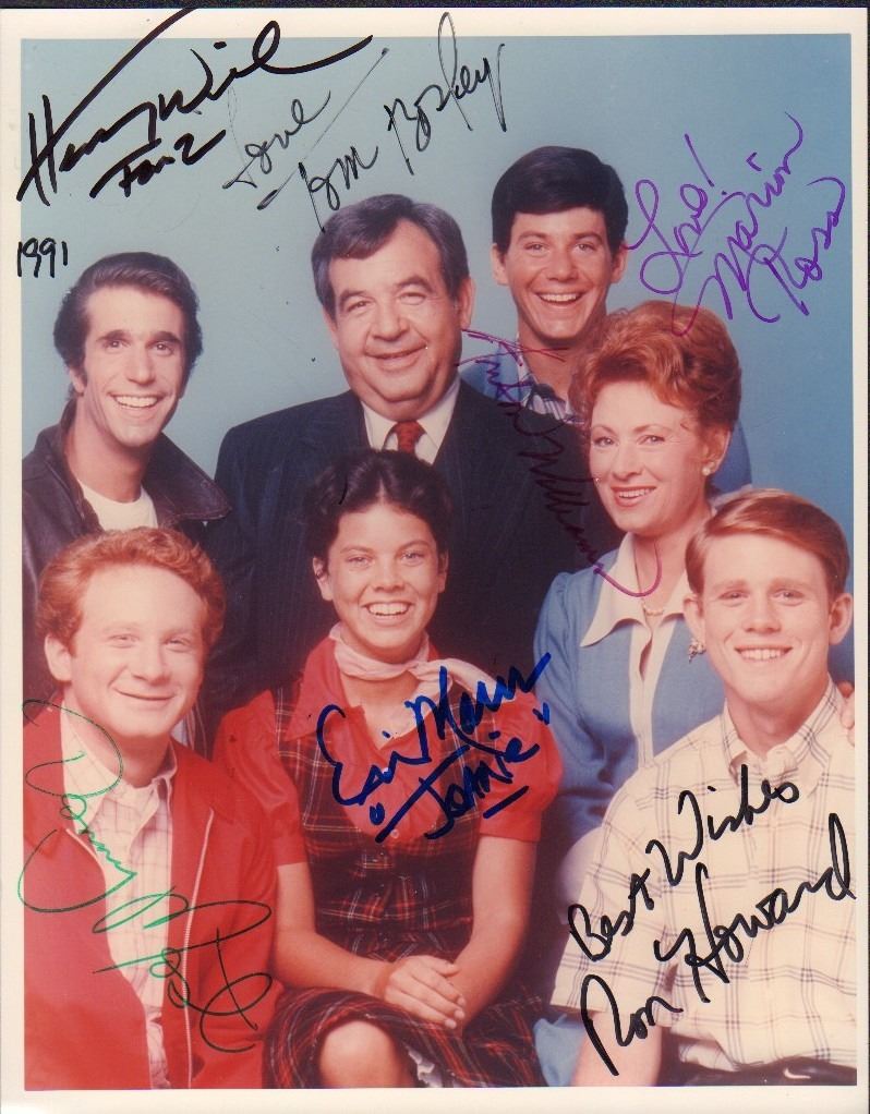 Vintage cast signed 8x10 by entire cast Henry Winkler Tom Bosley Marion Ross Erin Moran Donny Most Anson Williams and Ron Howard with COA