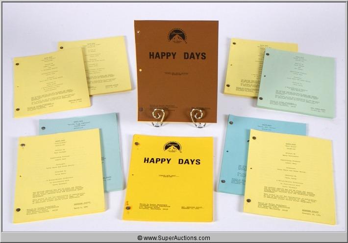 "Happy Days" Scripts / Paramount Pictures Corporation ~ "Welcome to My Nightmare" aka "Horror Show" / #60538-179 / Final Draft / January 13, 1981 ~ "Broadway It's Not" / #60538-180 / Shooting Script / January 22, 1981 ~ "Bride and Gloom" / #60538-181 / Revised Final Draft / January 28, 1981 ~ "Hello, Mrs. Arcola" / #60538-183 / Revised Final Draft / February 3, 1981 ~ "Fonzie Gets Shot" / #60538-182 / Revised Shooting Script / February 13, 1981 ~ "Tall Story" / #60538-184 / Shooting Script / February 26, 1981 ~ "Scholarship" / #60538-185 / Shooting Script / March 5, 1981 ~ "Howard's Bowling Buddy" / #60538-187 / Shooting Script / March 19, 1981 ~ "Mother And Child Reunion" #60538-188 / Revised Shooting Script / March 27, 1981 ~ "American Musical" / #60538-189 / Shooting Script / April 2, 1981 ~ "R.C. & L.B. Forever" / #60538-186 / Shooting Script / March 12, 1981