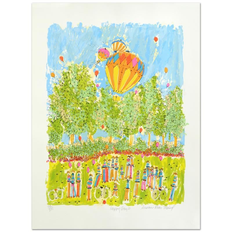 "Happy Days" is a limited edition serigraph on paper by Susan Pear Meisel, numbered and hand signed by the artist! Includes Certificate of Authenticity! Measures approx. 24" x 32.5" (with border), 19" x 27" (image).