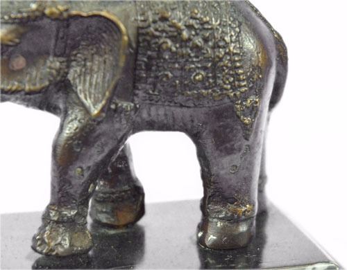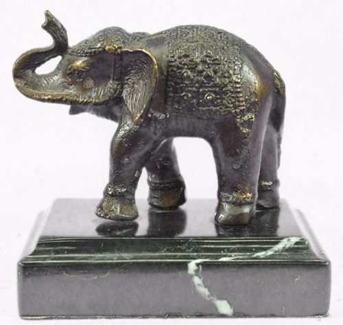 Many Don't Consider The Elephant For Its Beauty And Grace But Rather Its Size And Funny Trunk. This Sculpture Will Change That Perception. Though They Are The Largest Animals On Land, This Is Definitely A Creature To Admire. If You Study Them Long Enough You Will See Why There Are So Many Elephant Lovers Out There. This Elegant Performing Elephant Shows Off The Grace, Strength, Agility And Gentleness Of The Elephant. Carefully Handmade And Detailed, Notice The Intricate Work Of The Beaded Shawl That Is Thrown Over Its Back And Head Like Many Elephant Performers At Hindu Gatherings And The Golden Cuffs Around Its Ankles. It Raises Its Trunk To Greet The Onlookers. This Brown Patina Sculpture Was Cast Using The Lost Wax Method. Bronze Dimensions With Marble Base: Height 4" X Width 41/2" Marble Dimensions: 4 1/2 X 2 1/2" Height Without Base: 3"