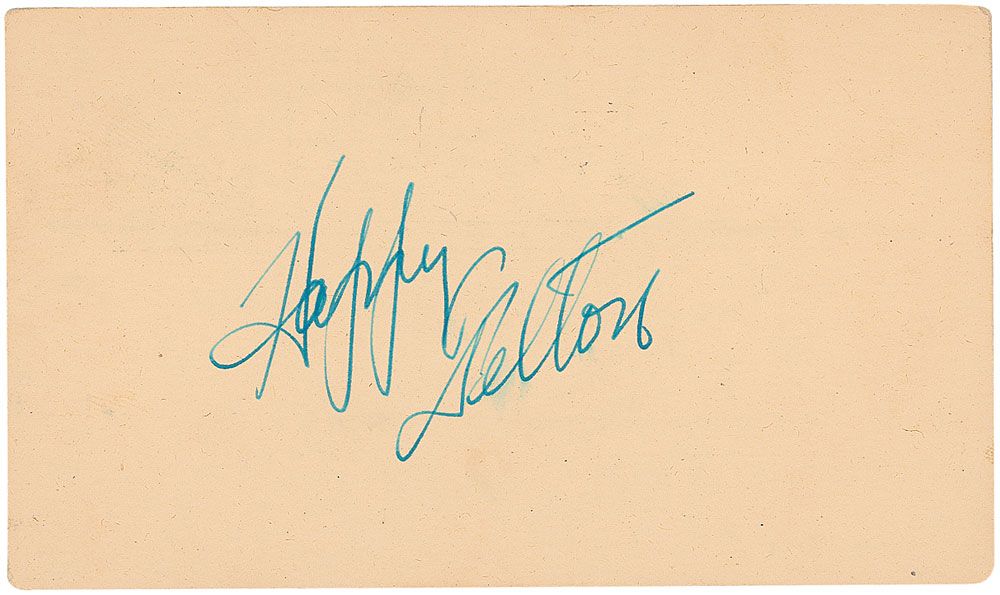 Brooklyn Dodger announcer and host of the legendary ‘Knot-Hole Gang’ show who died in 1964. Vintage ink signature, “Happy Felton,” on an off-white 5.5 x 3.25 government postcard (postmarked 8/1). In fine condition.