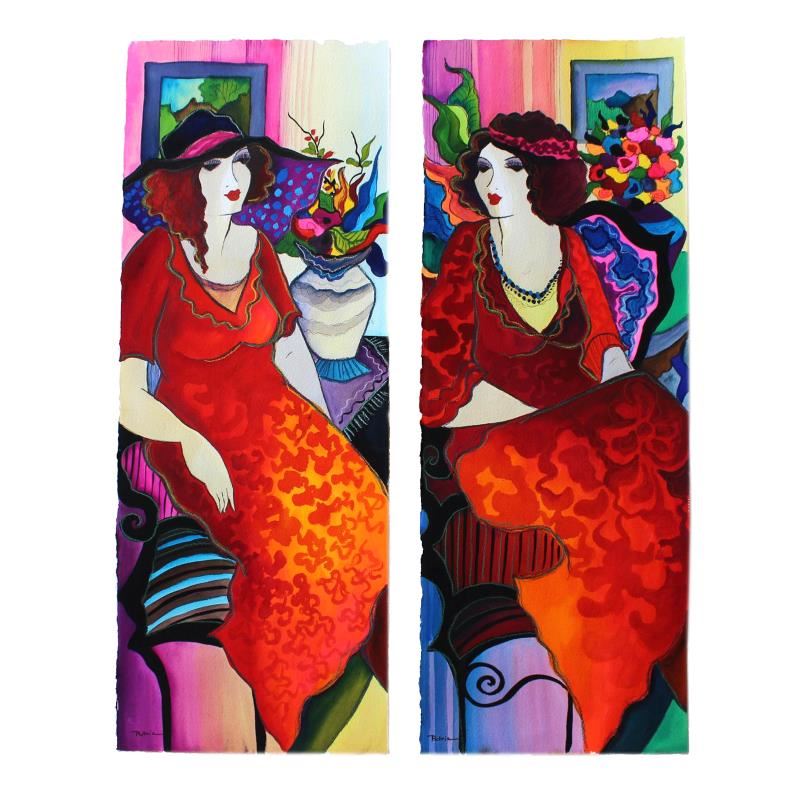 "Happy Hour" is a set of two original Watercolor on Paper by Patricia Govezensky. The piece is hand signed and comes with a Certificate of Authenticity. Measures approximately 11" x 29".