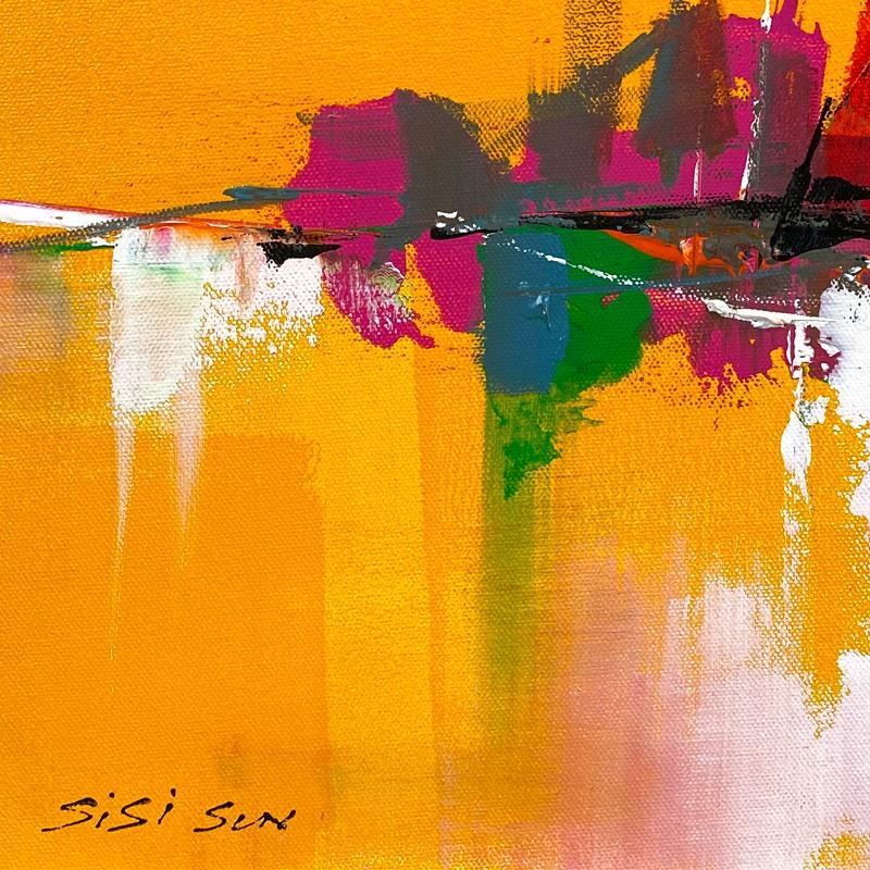 "Harbor 2" is an original acrylic painting on canvas by Sisi Sun, hand signed by the artist. This piece comes gallery wrapped. Includes Letter of Authenticity. Measures approx. 20" x 20" (image).