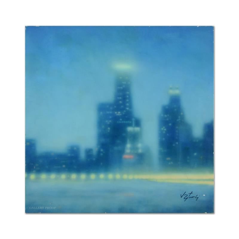 "Harbor Lights" is a limited edition giclee from a GP edition on stretched canvas by Vincent George, hand signed by the artist. Includes Letter of Authenticity. Measures approx. 30" x 30" (image). ** Please note: There are some scuffs and chipping on the canvas, primarily on the corners and edges. **