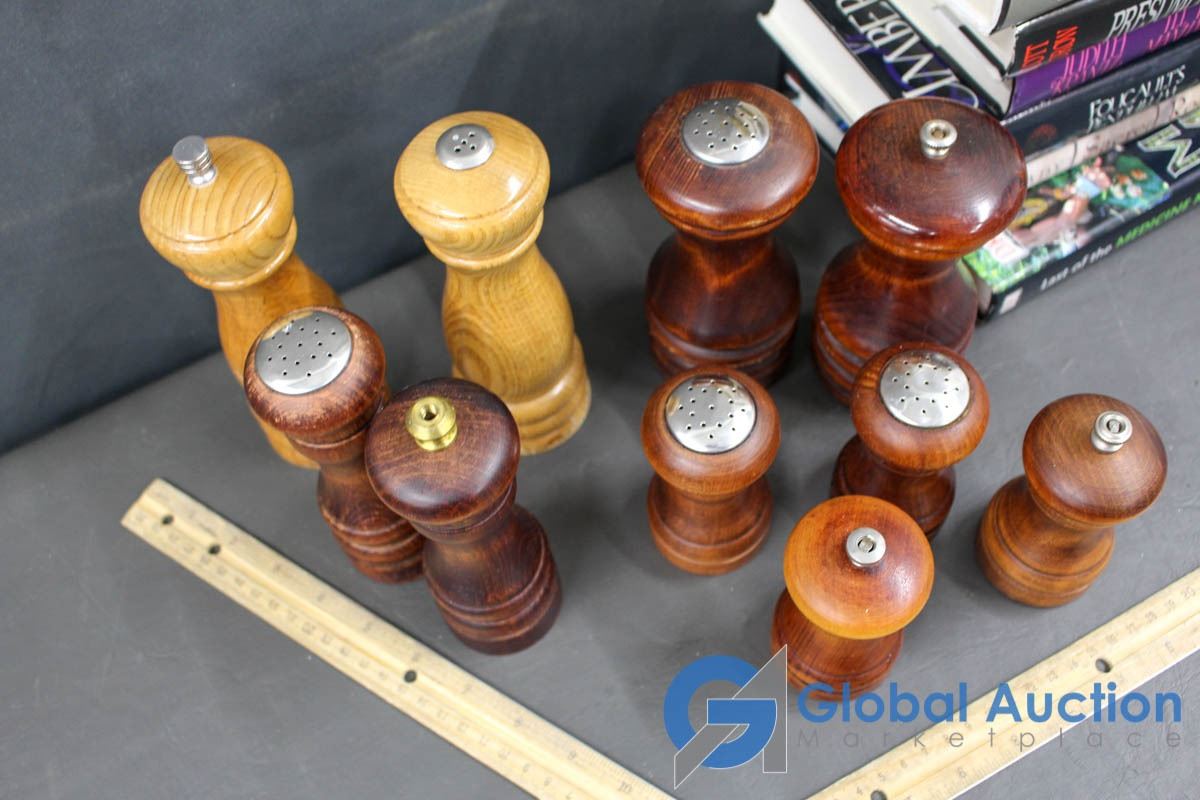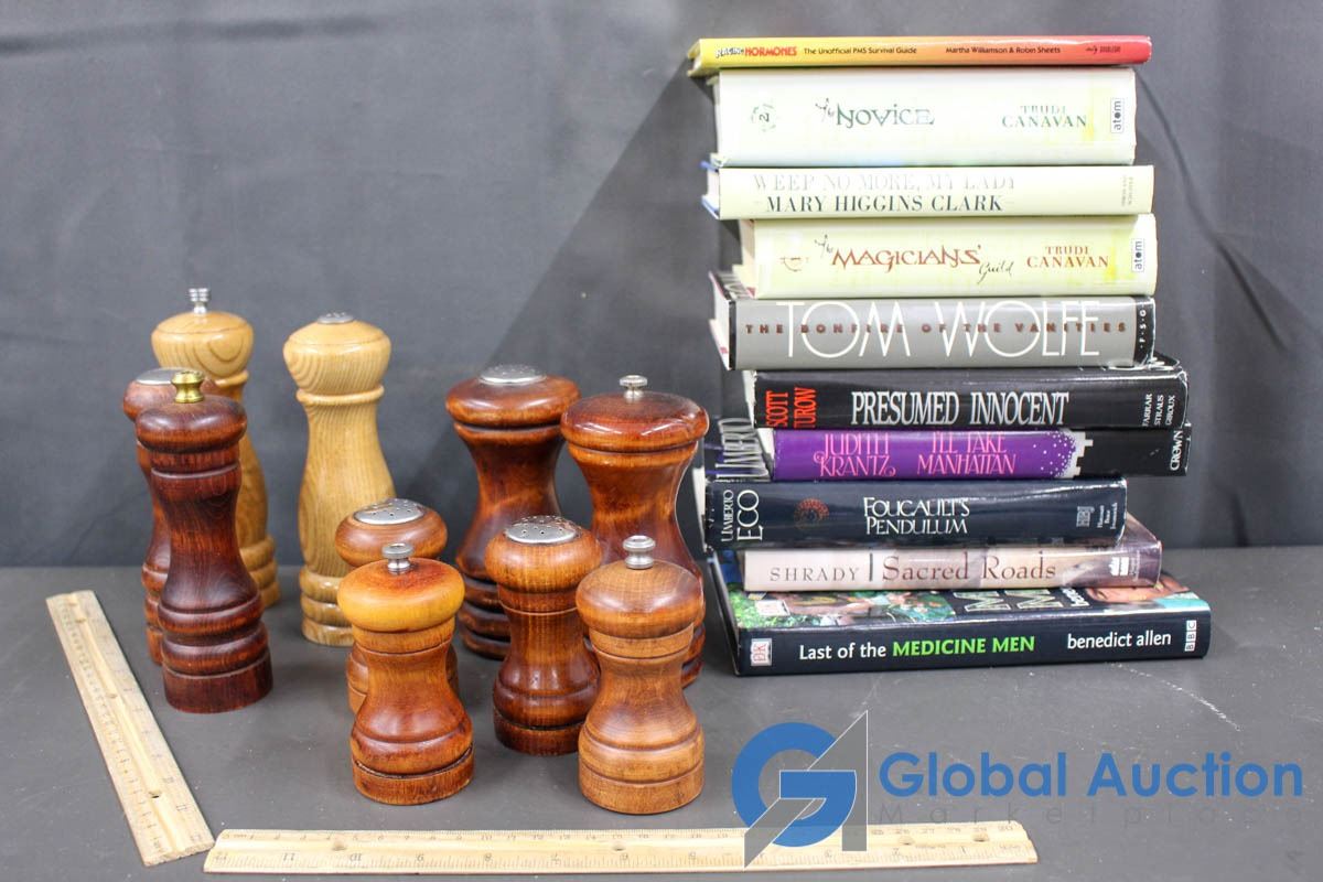 Hard Cover Books and 5 Pepper Mill and Salt Shaker Sets