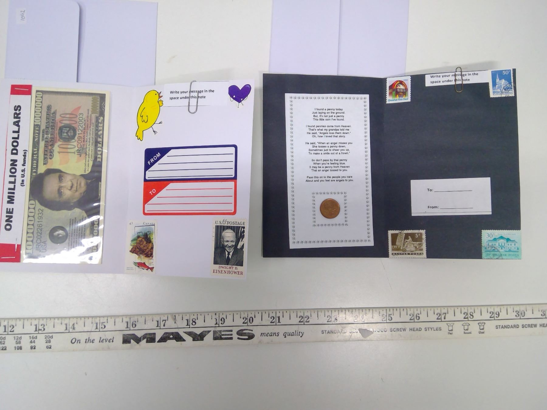 Hard Crafted Greeting Cards and Stickers - One with Lucky Penny and the other one with U.S. One Million Dollar Johnny Cash Banknote