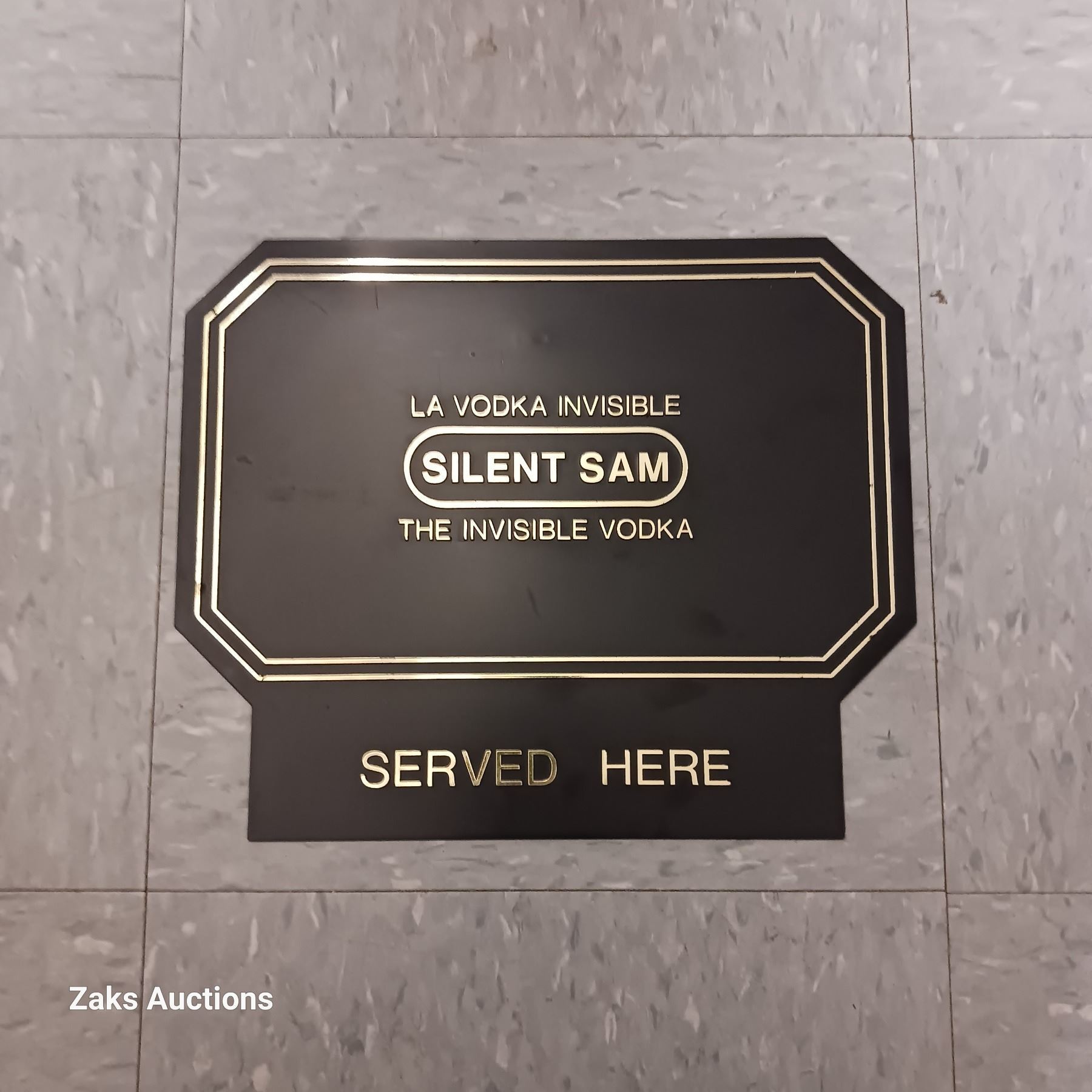 Hard Plastic Silent Sam The Invisible Vodka Served Here Sign. Floor tiles in background are 12x12"