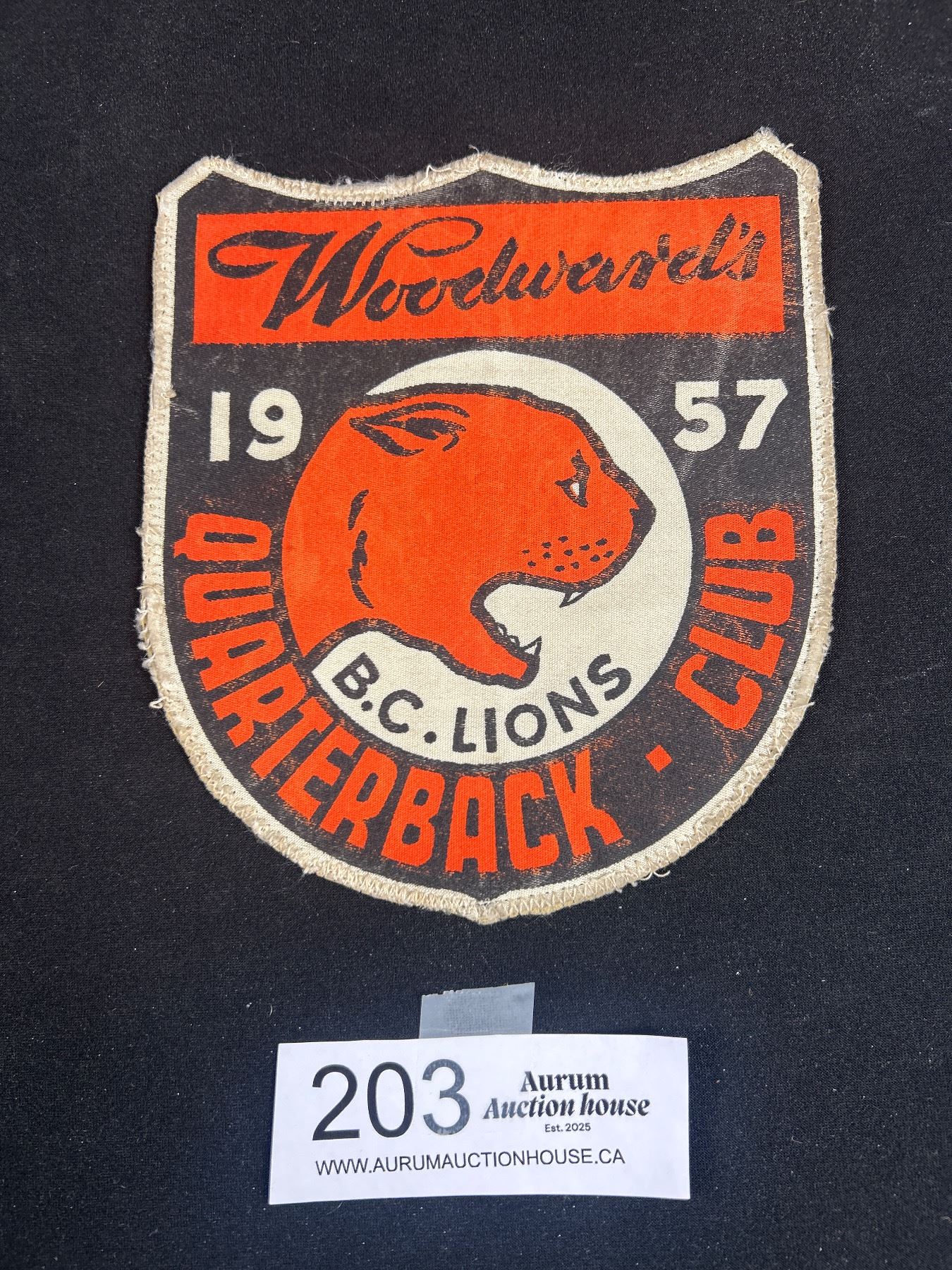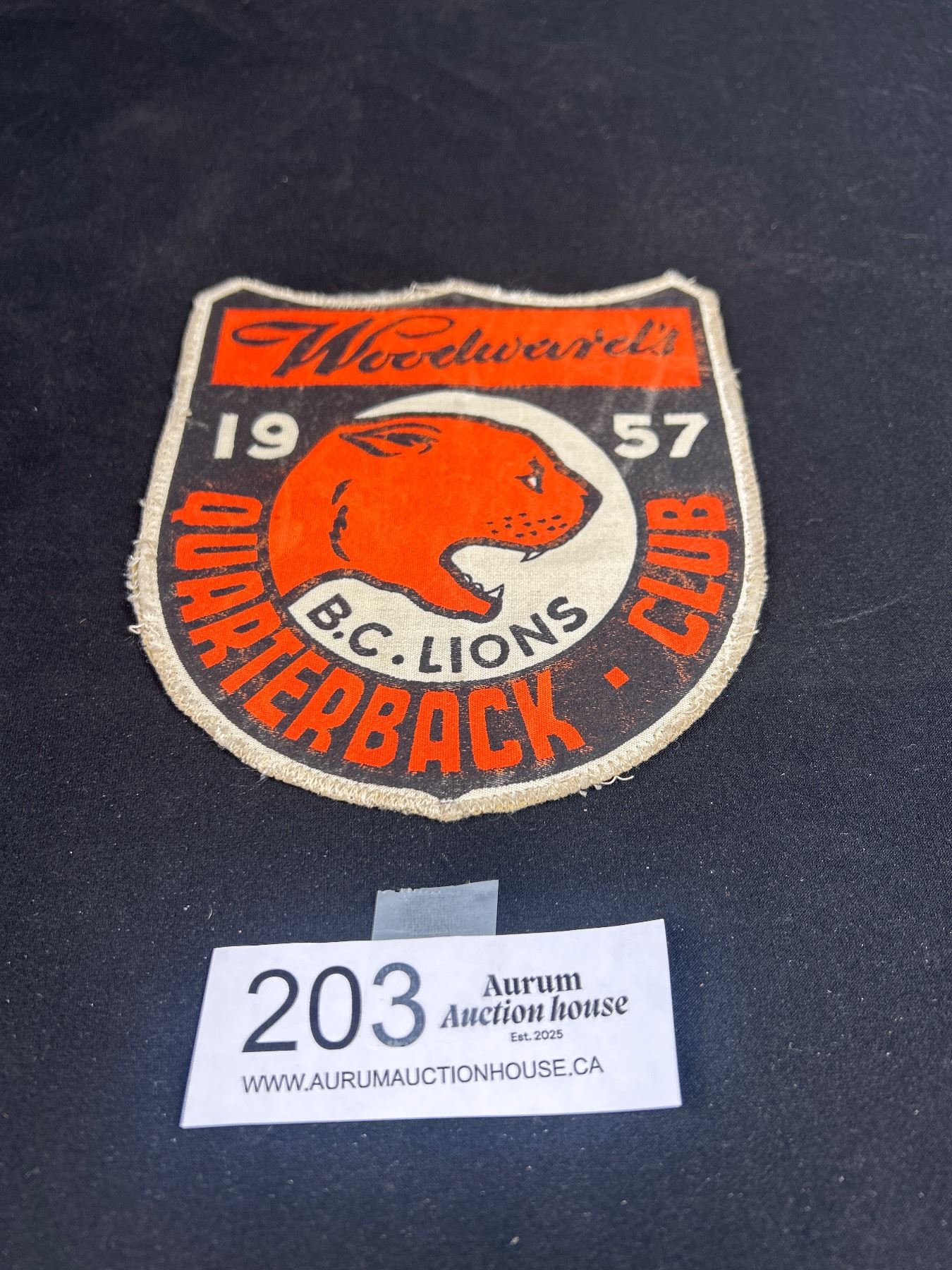 Hard to find 1957 BC Lions Woodwards Quaterback Club Patch