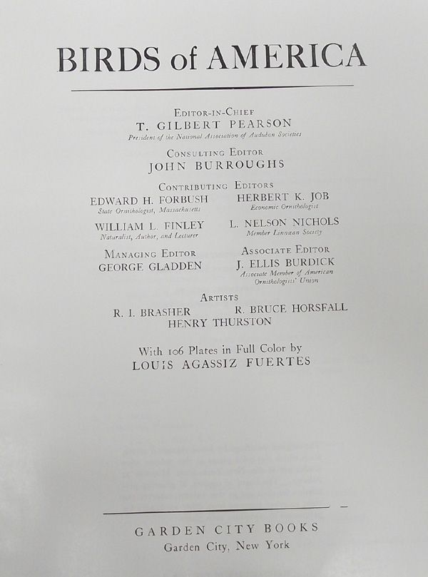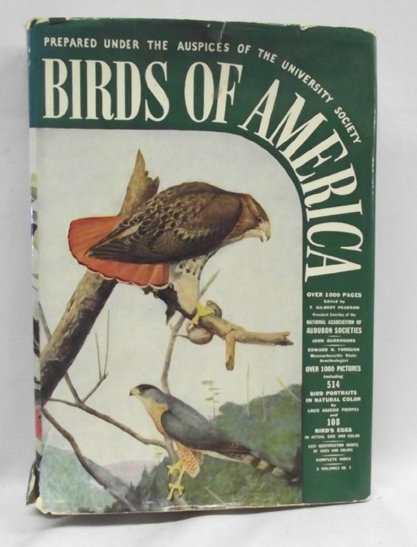 Hardback Book ''Birds of America'' 1936 Edition. 289 pages of photographs and text. Editor-in-Chief is T. Gilbert Pearson, President of the National Audubon Societies. Book is in good condition for age. Dust jacket has some tears. Book measures 8''x11''.