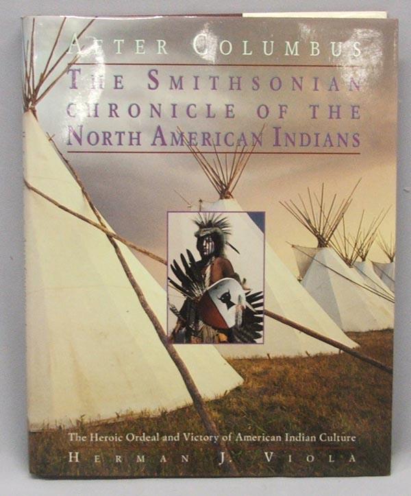 Hardback Book, ''After Columbus: The Smithsonian Chronicle of the North American Indians, the Heroic Ordeal and Victory of American Indian Culture,'' by Herman J. Viola. First Edition book, 1990. Measures 11''x9''. Book and dust jacket are in good condition. SHI $15.