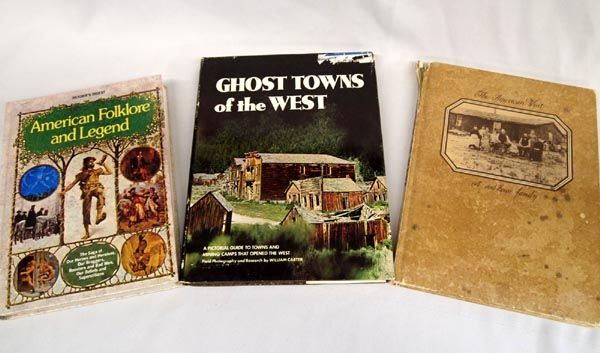 3 Hardback Books on American Folklore and the West. One book is a Sunset book, ''Ghost Towns of the West,'' and it is 256 pages, in good condition, measuring 9'' x 11.5''. The second book is ''The Colorful Story of the American West'' covering the period from colonial days to settling the west. The third book is a Reader's Digest, ''American Folklore and Legend.'' All are in good condition.