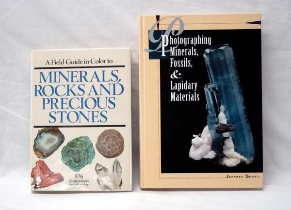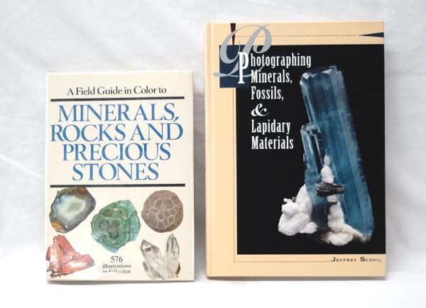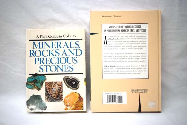 Hardback Reference Books on Rocks, Minerals, & Fossils, largest measures 7'' x 11'', #1 A Field Guide in Color to Minerals, Rocks and Precious Stones by Dr. Jaroslav Bauer, c. 1974 Chartwell Books, Inc., 208pgs. #2 Photographing Minerals, Fossils, and Lapidary Materials by Jeffrey Scovil, c. 1996 Geoscience Press, Inc., 224pgs. Like new condition.