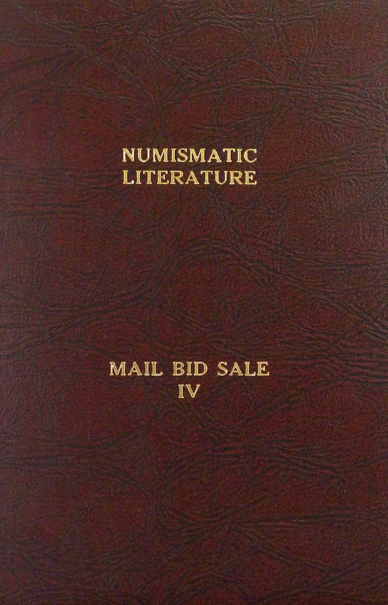 Kolbe, George Frederick. MAIL BID SALE IV. NUMISMATIC LITERATURE. Santa Ana, May 20, 1978. 8vo, original maroon Spanish-grained cloth, gilt; original printed card covers bound in. (2), 109, (1) pages; 1414 lots; prices realized list bound in. Fine. The hardbound presentation edition, one of fewer than 30 copies thus bound. Highlights included two copies of Eckfeldt and DuBois with gold samples.