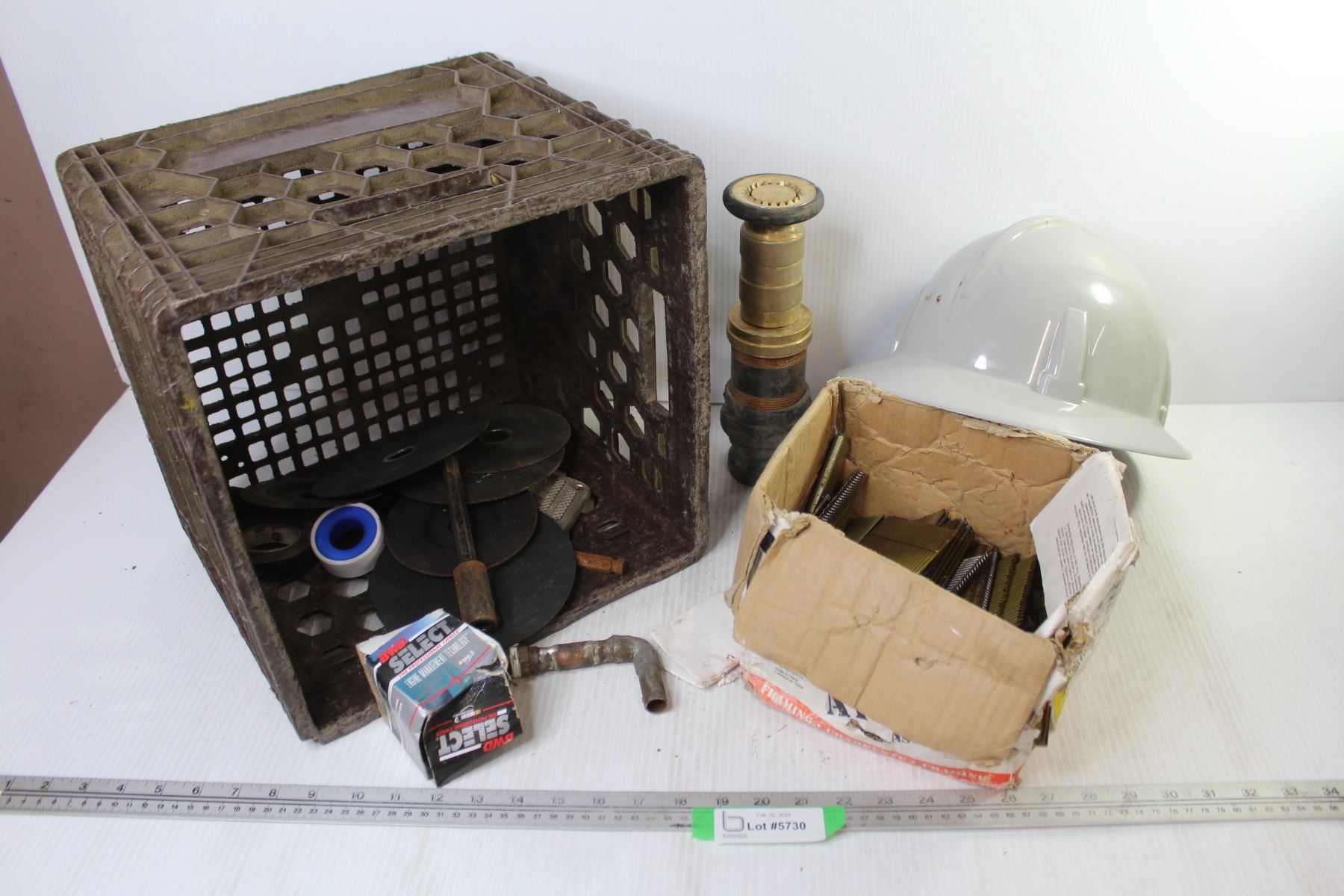 Hardhat, 3" Air Nails, Fire Hose Nozzle, Cutting Discs, etc.