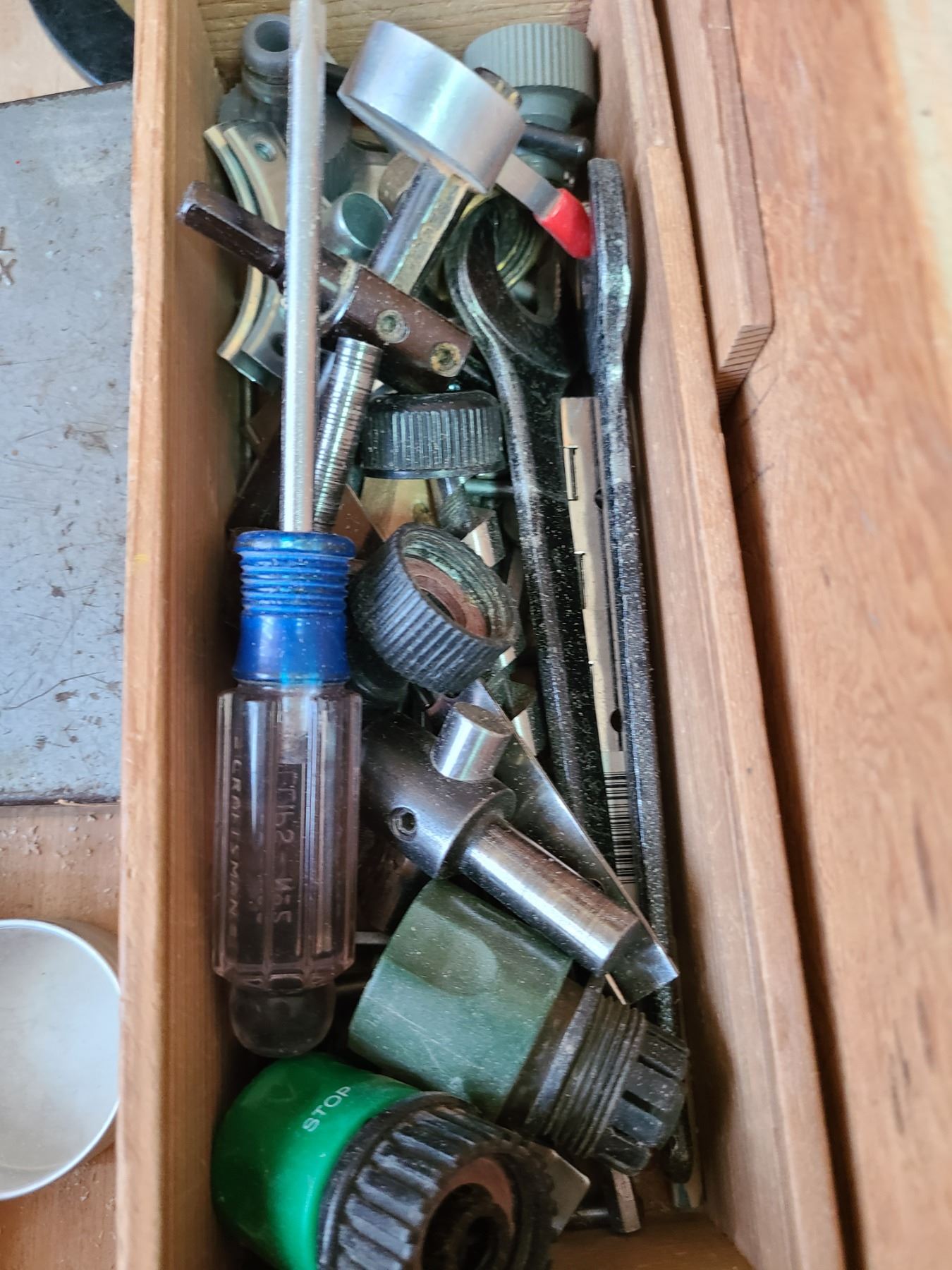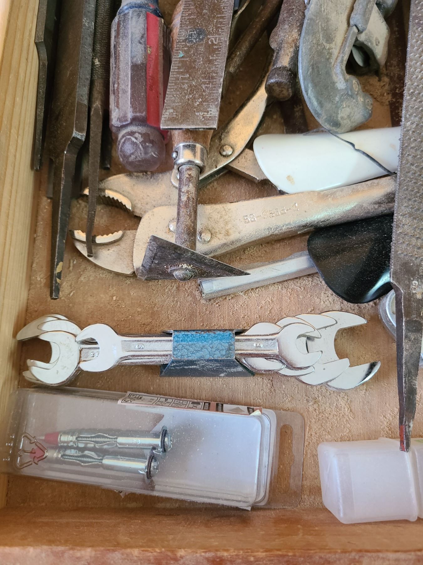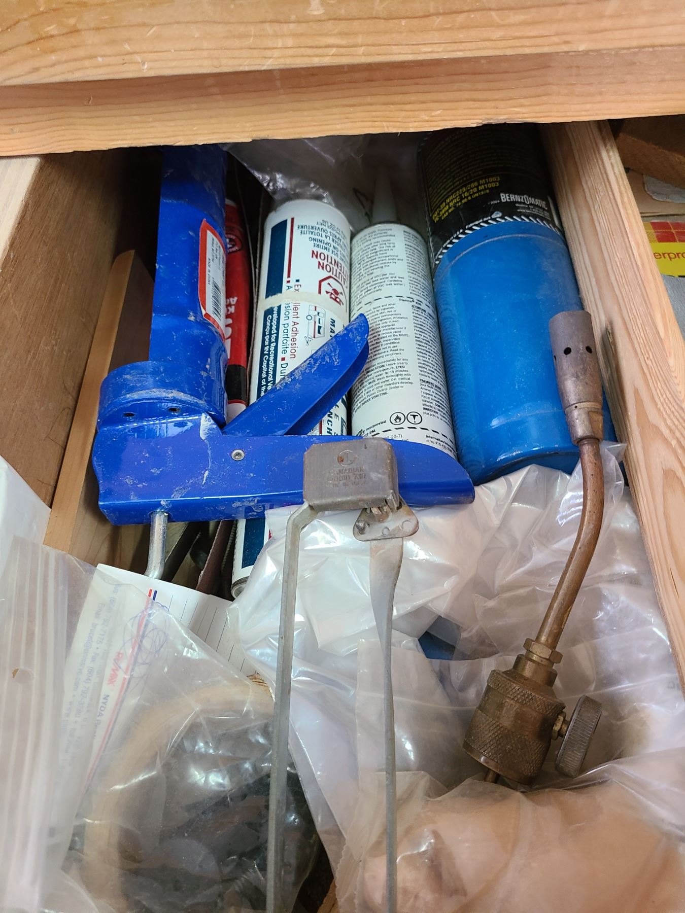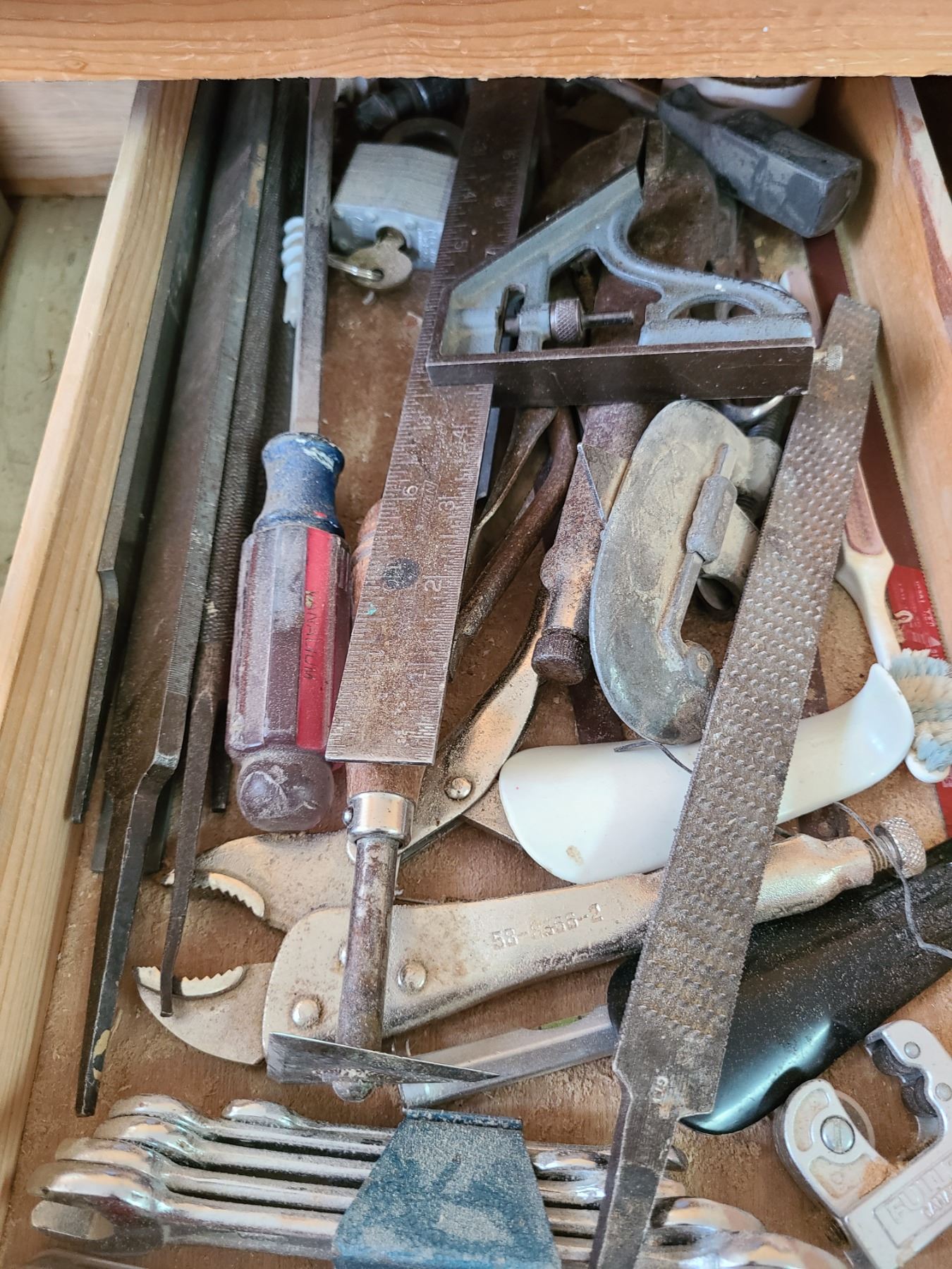 Four drawers of small carpentry items including tools. Bring boxes. Pickup 9 am.
