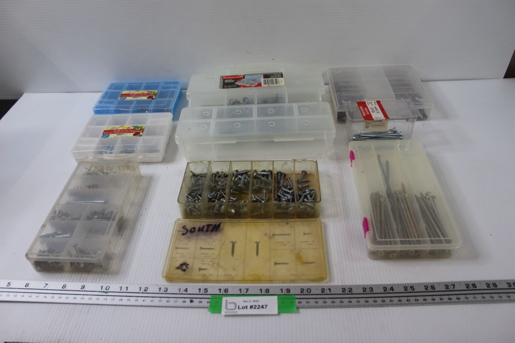 Hardware Lot: Assorted Screws, Nuts, Misc. in Storage Containers