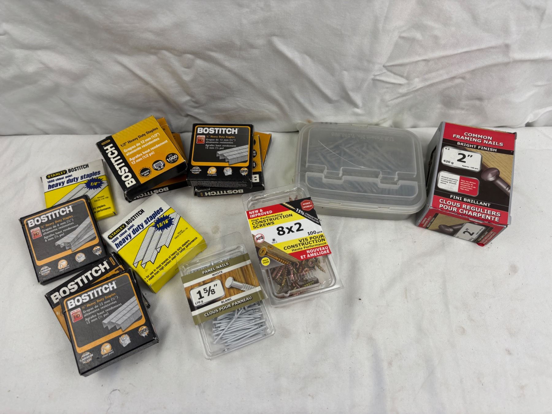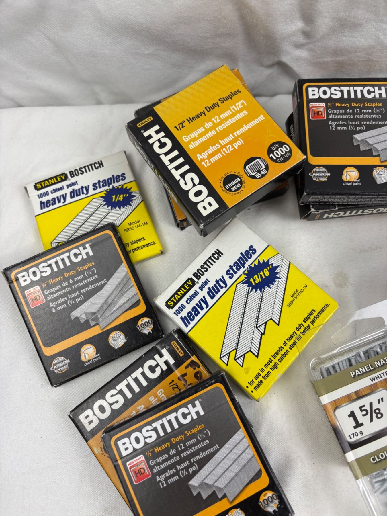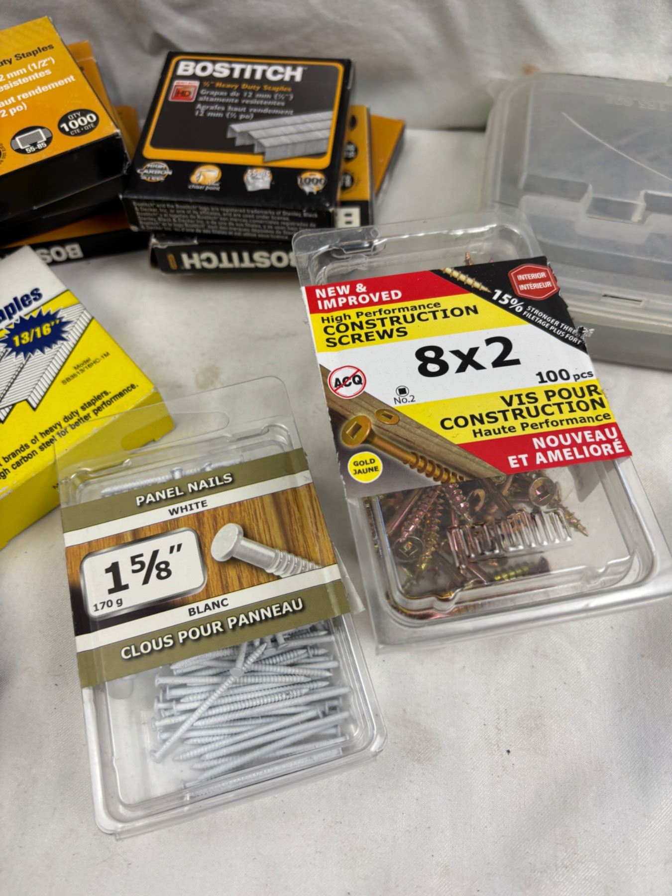 Includes Bostitch staples, nails, screws, and more, new and open packages
