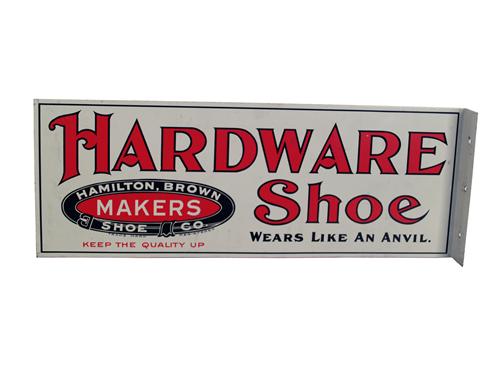 Hardware Shoe tin 2-sided flange sign 7 x 20 " exlnt cond