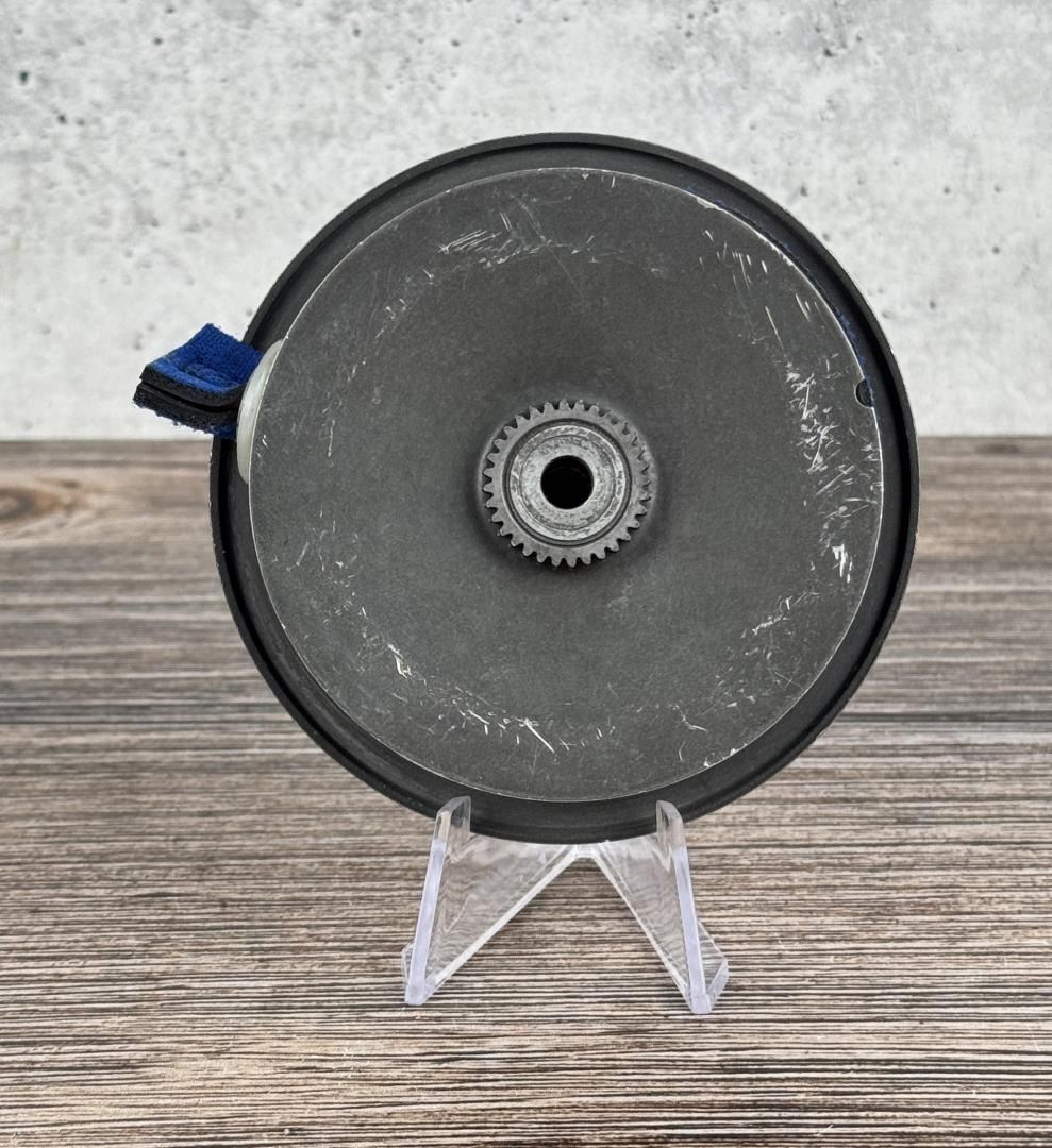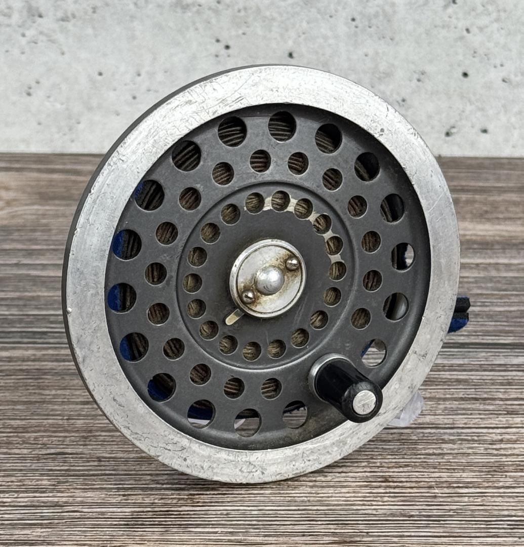 3 5/8" in diameter. Unmarked, but appears to be from a Hardy Brothers reel.