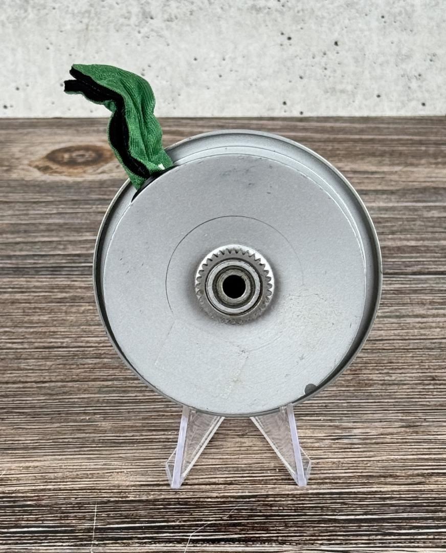 3 1/4" in diameter. Unmarked, but appears to be from a Hardy Brothers reel.