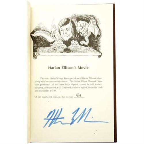 <B>Harlan Ellison Limited Signed: </B></I><B><I>Harlan Ellison's Movie </B></I></B></I><B>with</B></I><B><I> The Harlan Ellison Hornbook.</B></I></B></I> (Westminster, MD: The Mirage Press, Ltd., 1990), limited signed first edition, 151 and 417 pages, brown boards, 8vo, slip case. Condition (book/ dj): fine/ fine.<BR><BR><b>Shipping:</b> Books & Catalogs (<a target="_blank" href="http://www.heritageauctions.com/common/shipping.php">view shipping information</a>)