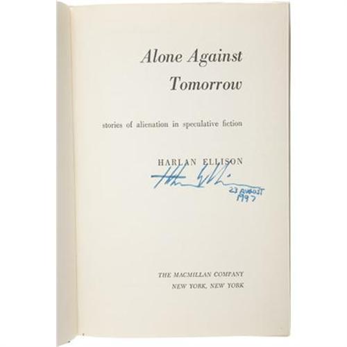 <B>Harlan Ellison: Two Signed First Editions.</B></I> Includes the following:<BR><B><I>Alone Against Tomorrow.</B></I></B></I> (New York: The Macmillan Company, 1971), first edition, 312 pages, brown boards, 8vo, dust jacket. Condition (book/ dj): fine/ fine.<BR><B><I>Shatterday.</B></I></B></I> (Boston: Houghton Mifflin Company, 1980), first edition, 332 pages, black boards, 8vo, dust jacket. Condition (book/ dj): fine/ fine.<BR><BR><b>Shipping:</b> Books & Catalogs (<a target="_blank" href="http://www.heritageauctions.com/common/shipping.php">view shipping information</a>)