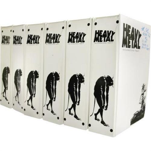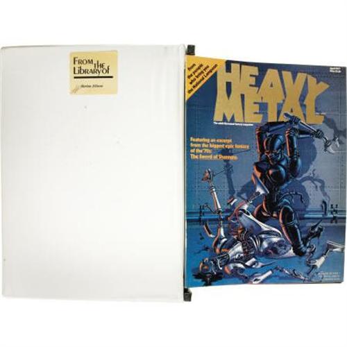 <B>Harlan Ellison's Personal Collection of <I>Heavy Metal</B></I></B></I> <B>Magazine.</B></I> Stored in six large white <I>Heavy Metal</B></I> archival three-ring binders. Ellison has signed at the top of the front cover of each three-ring binder and written underneath his signature on each volume as follows: binder 1: "<I>ARCHIVE FILE #1 DO NOT REMOVE!</B></I>"; binder 2: "<I>ARCHIVE FILE #2 DO NOT REMOVE ON PAIN OF DEATH!</B></I>"; binder 3: "<I>ARCHIVE FILE #3 DO NOT REMOVE, I'M NOT KIDDING!</B></I>"; binder 4: "<I>ARCHIVE FILE #4 DON'T TOUCH!</B></I>"; binder 5:"<I>ARCHIVE FILE #5 DON'T REMOVE! THIS MEANS YOU!</B></I>"; binder 6: "<I>ARCHIVE FILE #6 OFFICE COPIES, DO NOT REMOVE!</B></I>". The collection contains a complete run of <I>Heavy Metal</B></I> between its debut issue of April 1977 to March 1984 (with one additional issue from 1993). Also, each binder has a signed Harlan Ellison bookplate affixed to the inside front cover. A wonderful assemblage of the most popular and influential fantasy magazine of the late 1970s and early 1980s owned by a science fiction and fantasy legend. The collection here includes a number of Ellison stories published in <I>Heavy Metal,</B></I> namely: "How's the Night Life on Cissalda?" (November 1977 ), "Croatoan" (September 1978), "Flop Sweat" (March 1979), "Santa '79: An Introductory Update a Decade Later" (December 1979), and "Fear Not Your Enemies" (March 1981). A one-of-a-kind opportunity to obtain a large collection of <I>Heavy Metal</B></I> owned by Ellison himself.<BR><BR><b>Shipping:</b> Books & Catalogs (<a target="_blank" href="http://www.heritageauctions.com/common/shipping.php">view shipping information</a>)